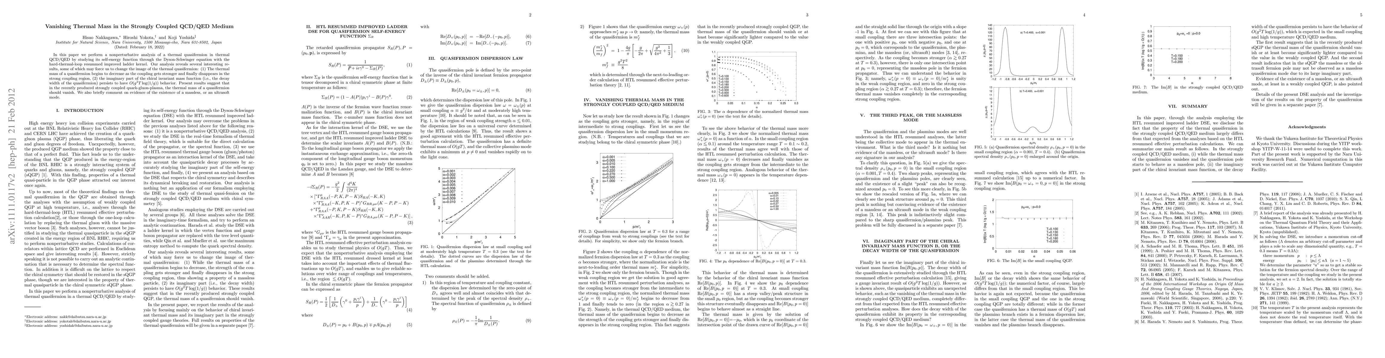 In this paper we perform a nonperturbative analysis of a thermal quasifermion in thermal QCD/QED by studying its self-energy function through the Dyson-Schwinger equation with the hard-thermal-loop resummed improved ladder kernel. Our analysis reveals several interesting results, some of which may force us to change the image of the thermal quasifermion: (1) The thermal mass of a quasifermion begins to decrease as the coupling gets stronger and finally disappears in the strong coupling region,(2) the imaginary part of the chiral invariant mass function (i.e., the decay width of the quasifermion) persists to have $O(g^2 T \log (1/g))$ behavior. Present results suggest that in the recently produced strongly coupled quark-gluon-plasma, the thermal mass of a quasifermion should vanish. We also briefly comment on evidence of the existence of a massless, or an ultrasoft mode.
