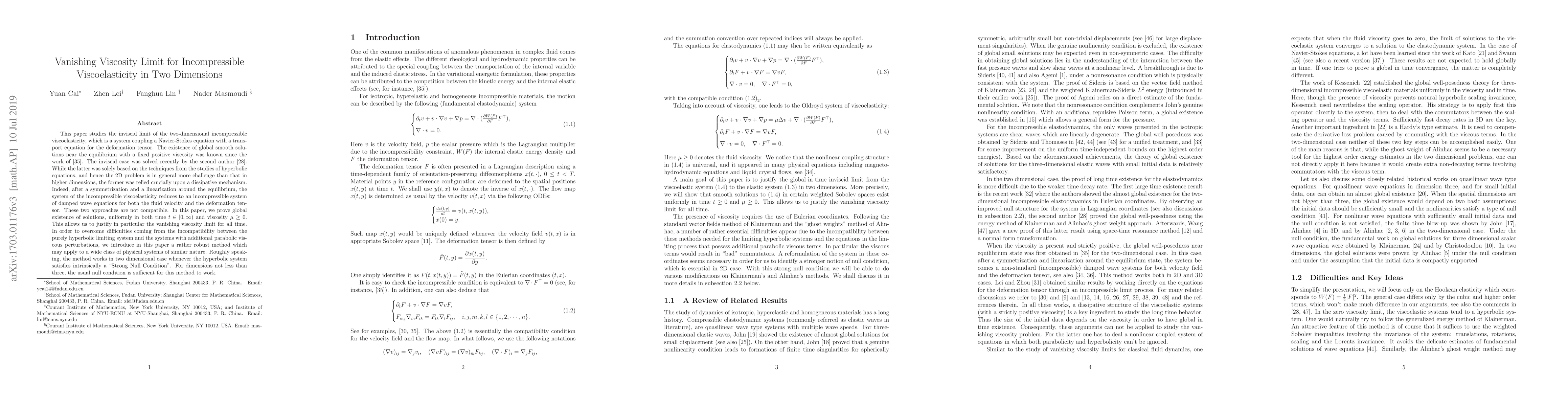 This paper studies the inviscid limit of the two-dimensional incompressible viscoelasticity, which is a system coupling a Navier-Stokes equation with a transport equation for the deformation tensor. The existence of global smooth solutions near the equilibrium with a fixed positive viscosity was known since the work of F. H. Lin, C. Liu, and P. Zhang in "On hydrodynamics of viscoelastic fluids". The inviscid case was solved recently by the second author Z. Lei. in "Global well-posedness of incompressible elastodynamics in two dimensions". While the latter was solely based on the techniques from the studies of hyperbolic equations, and hence the 2D problem is in general more challenge than that in higher dimensions, the former was relied crucially upon a dissipative mechanism. Indeed, after a symmetrization and a linearization around the equilibrium, the system of the incompressible viscoelasticity reduces to an incompressible system of damped wave equations for both the fluid velocity and the deformation tensor. These two approaches are not compatible. In this paper, we prove global existence of solutions, uniformly in both time $t \in [0, \infty)$ and viscosity $\mu \geq 0$. This allows us to justify in particular the vanishing viscosity limit for all time. In order to overcome difficulties coming from the incompatibility between the purely hyperbolic limiting system and the systems with additional parabolic viscous perturbations, we introduce in this paper a rather robust method which may apply to a wide class of physical systems of similar nature. Roughly speaking, the method works in two dimensional case whenever the hyperbolic system satisfies intrinsically a "Strong Null Condition". For dimensions not less than three, the usual null condition is sufficient for this method to work.