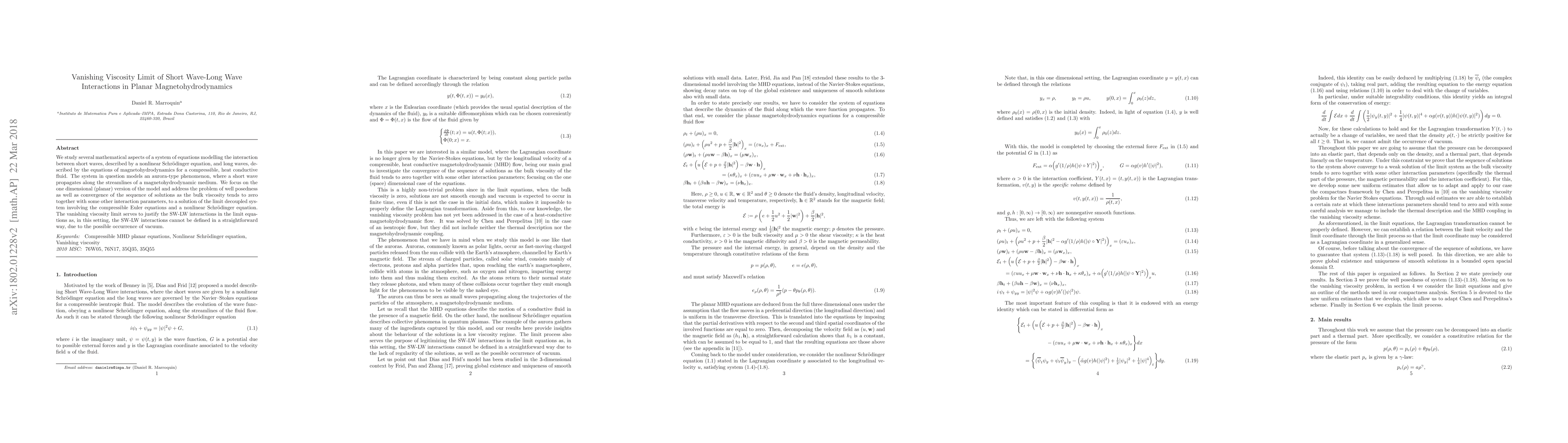 This paper investigates the mathematical behavior of a system modeling short wave-long wave interactions in planar magnetohydrodynamics, focusing on the vanishing viscosity limit. It examines the convergence of solutions as viscosity approaches zero, demonstrating the well-posedness and justifying the interactions in the limit equations, despite the potential for vacuum.
