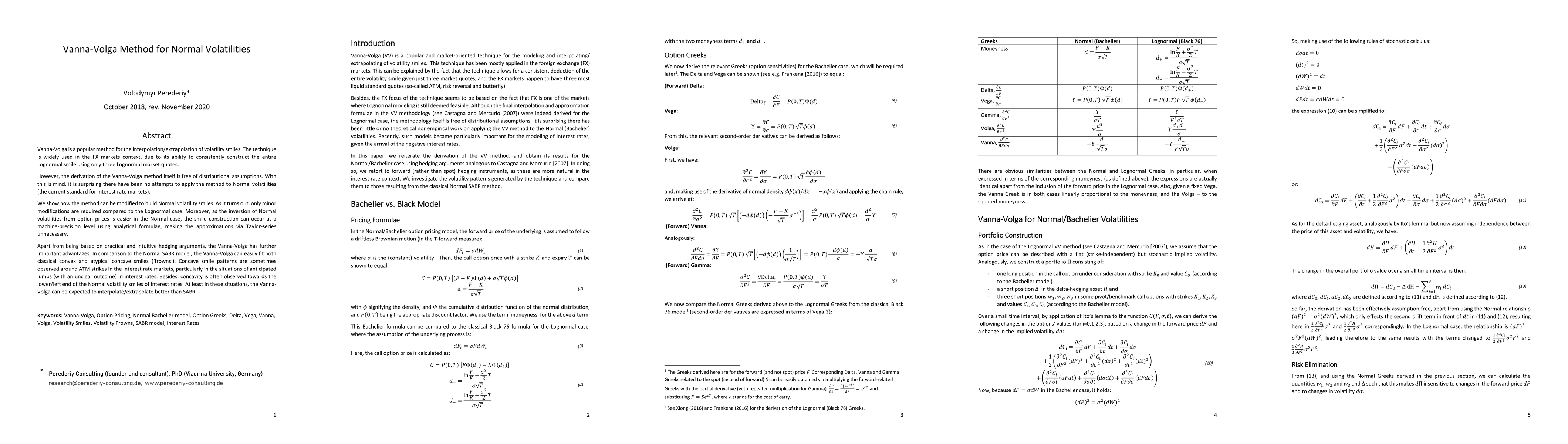 The Vanna-Volga method, originally for Lognormal volatilities, is adapted for Normal volatilities used in interest rate markets. Minor modifications enable analytical, machine-precision construction of Normal smiles, surpassing SABR in fitting both convex and atypical concave smile patterns observed in interest rate markets.