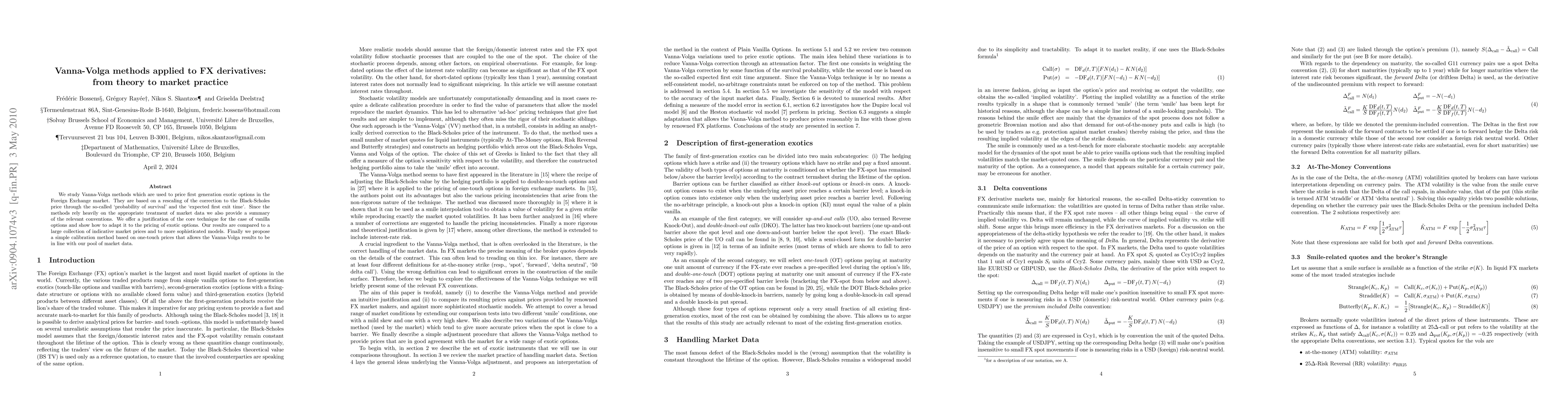 This paper applies Vanna-Volga methods to price FX derivatives, comparing results to market data and proposing a simple calibration method based on one-touch prices.