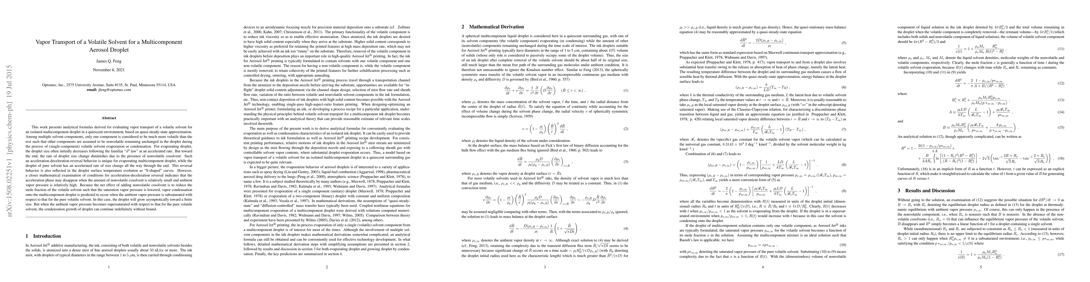 This paper develops analytical formulas to evaluate vapor transport of a highly volatile solvent in an isolated multicomponent droplet, showing that nonvolatile cosolvents cause an acceleration-deceleration reversal in droplet size change during evaporation. It also predicts that condensation can occur if ambient vapor pressure is subsaturated, leading to finite droplet growth.