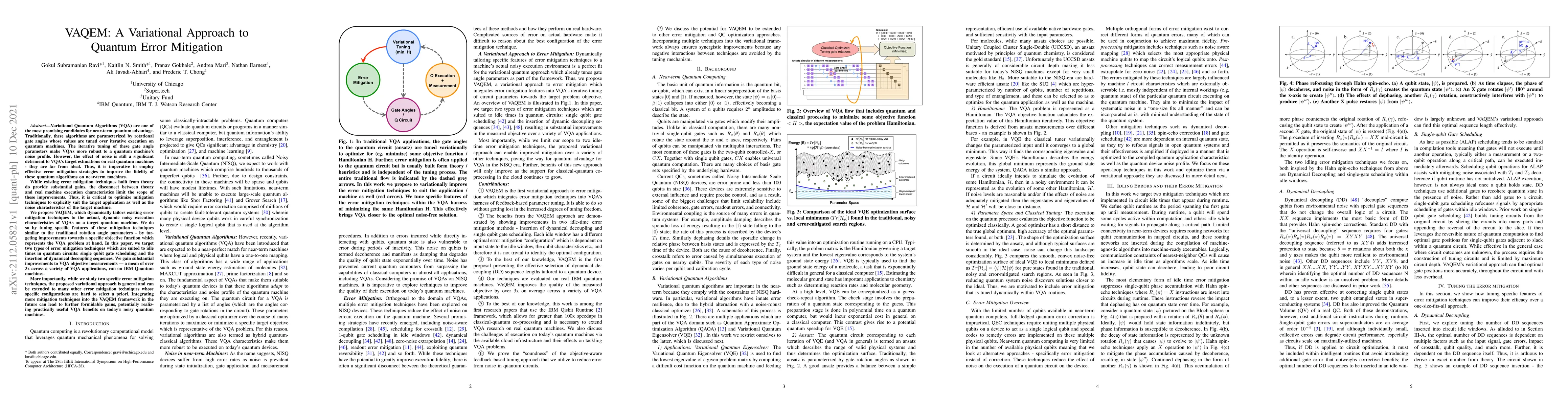 VAQEM proposes a variational approach to dynamically tailor error mitigation techniques to the specific noise characteristics of near-term quantum machines, achieving over 3x improvement in VQA fidelity. This method can be extended to various error mitigation techniques, enhancing practical benefits for current noisy quantum computations.