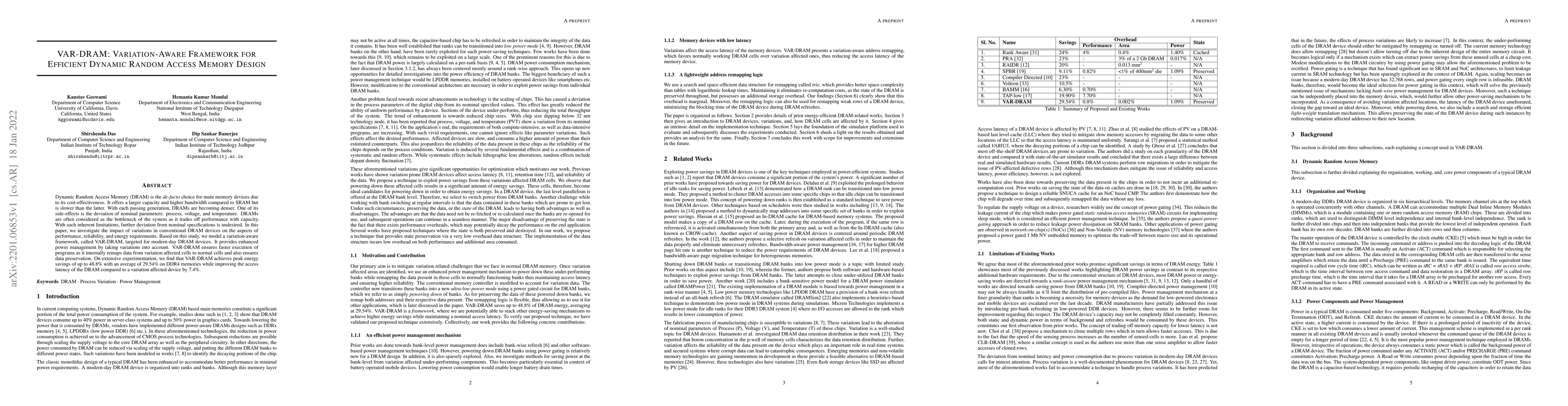 This paper introduces VAR-DRAM, a variation-aware framework for efficient DRAM design, addressing performance, reliability, and energy issues caused by deviations in process, voltage, and temperature. VAR-DRAM enhances power management and program execution speed by remapping data from affected cells, achieving up to 48.8% energy savings and a 7.4% reduction in access latency.