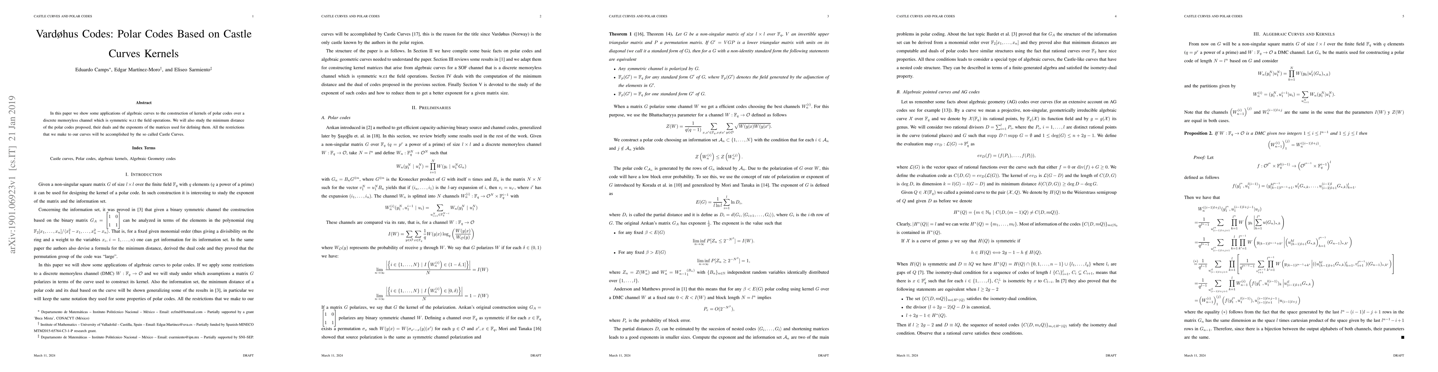 This paper explores the use of algebraic curves, specifically Castle Curves, to construct polar code kernels for symmetric discrete memoryless channels. It investigates the minimum distances of the proposed polar codes, their duals, and the exponents of the defining matrices.
