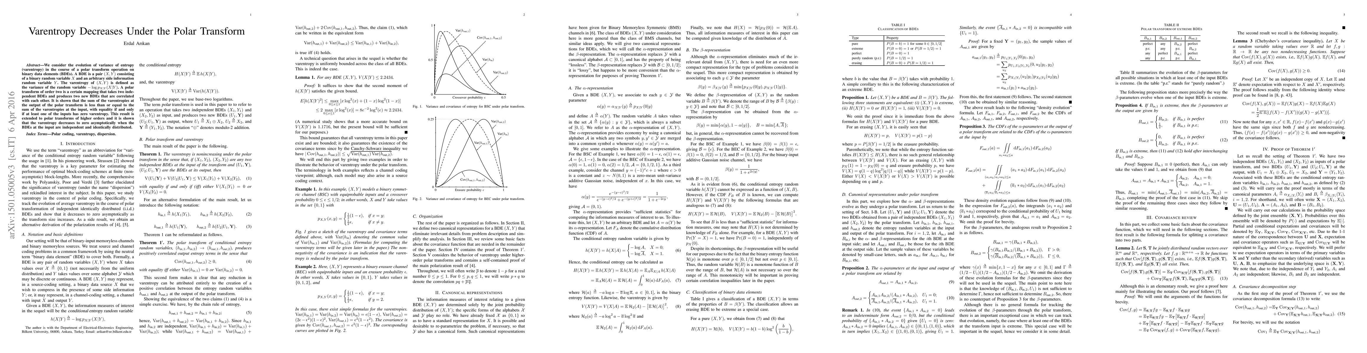 The paper investigates the effect of polar transforms on binary data elements and finds that varentropy decreases to zero asymptotically when inputs are independent and identically distributed.