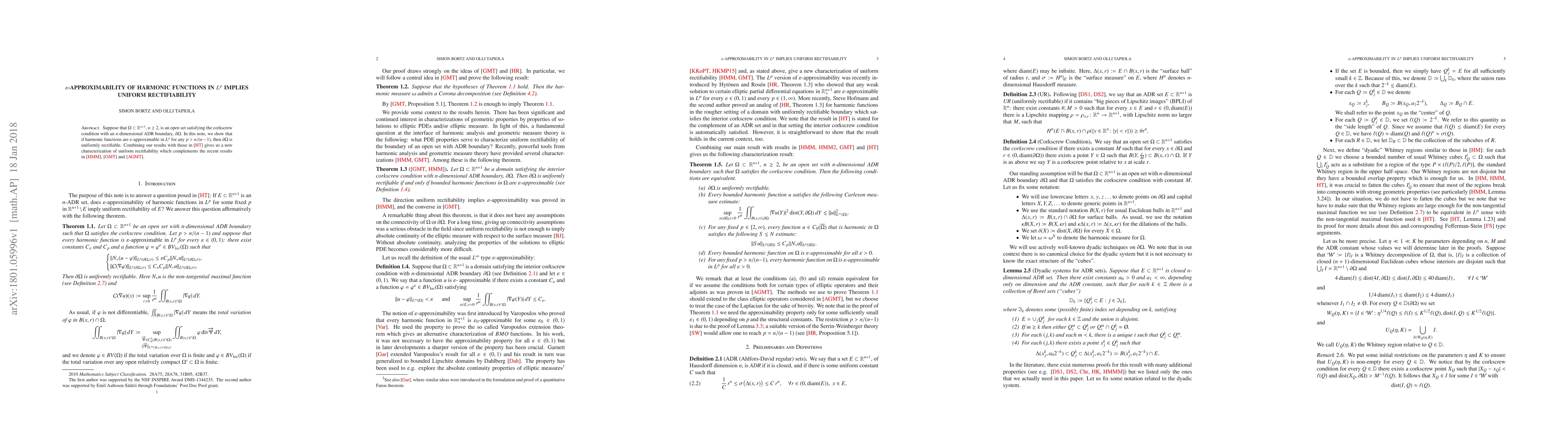 Suppose that $\Omega \subset \mathbb{R}^{n+1}$, $n \ge 2$, is an open set satisfying the corkscrew condition with an $n$-dimensional ADR boundary, $\partial \Omega$. In this note, we show that if harmonic functions are $\varepsilon$-approximable in $L^p$ for any $p > n/(n-1)$, then $\partial \Omega$ is uniformly rectifiable. Combining our results with those in [HT] (Hofmann-Tapiola) gives us a new characterization of uniform rectifiability which complements the recent results in [HMM] (Hofmann-Martell-Mayboroda), [GMT] (Garnett-Mourgoglou-Tolsa) and [AGMT] (Azzam-Garnett-Mourgoglou-Tolsa).
