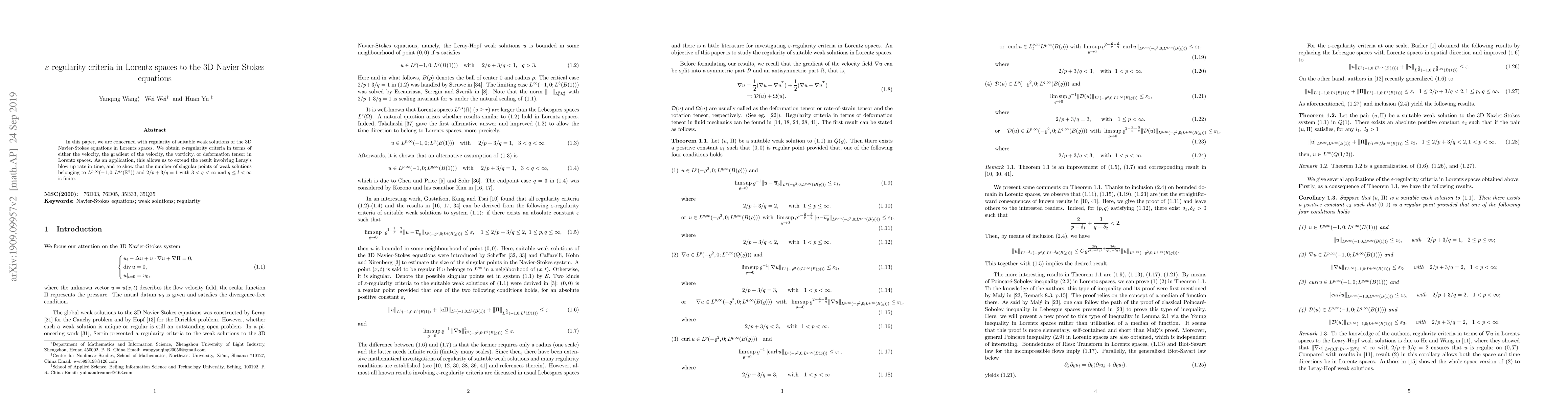 the 3D Navier-Stokes equations in Lorentz spaces. We obtain