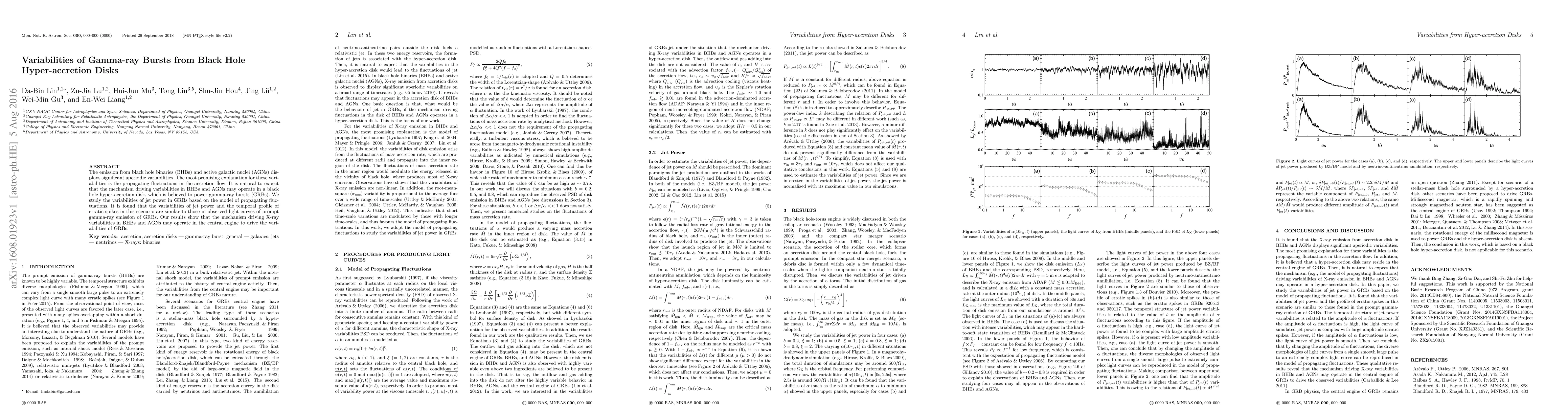 The study finds that fluctuations in a black hole hyper-accretion disk can explain the variabilities of gamma-ray bursts, similar to those observed in X-ray light curves of nearby black holes.