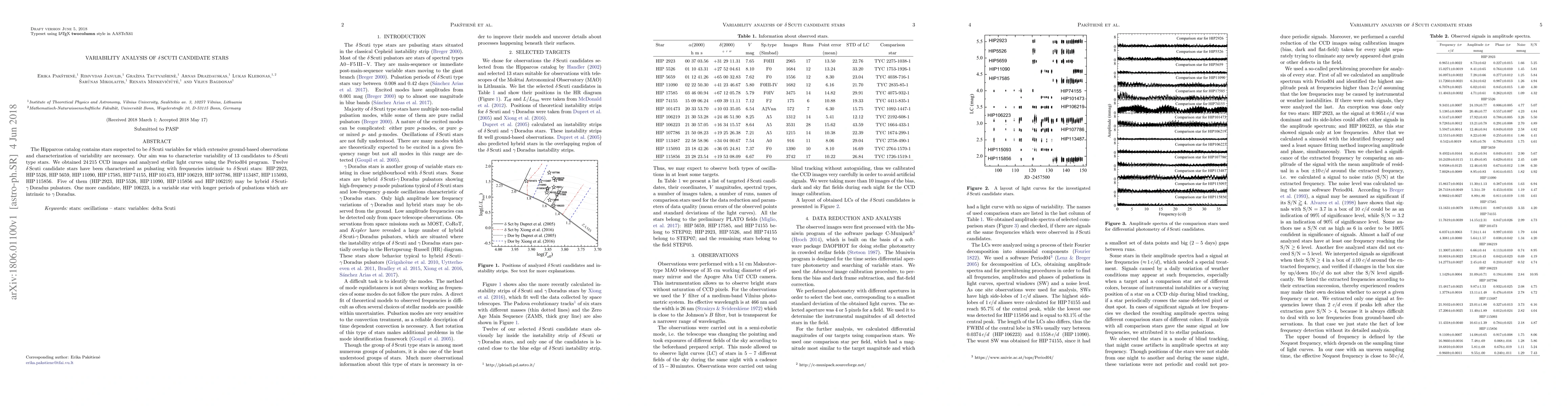 The Hipparcos catalog contains stars suspected to be {\delta} Scuti variables for which extensive ground-based observations and characterization of variability are necessary. Our aim was to characterize variability of 13 candidates to {\delta} Scuti type stars. We obtained 24 215 CCD images and analyzed stellar light curves using the Period04 program. Twelve {\delta} Scuti candidate stars have been characterized as pulsating with frequencies intrinsic to {\delta} Scuti stars: HIP 2923, HIP 5526, HIP 5659, HIP 11090, HIP 17585, HIP 74155, HIP 101473, HIP 106219, HIP 107786, HIP 113487, HIP 115093, HIP 115856. Five of them (HIP 2923, HIP 5526, HIP 11090, HIP 115856 and HIP 106219) may be hybrid {\delta} Scuti-{\gamma} Doradus pulsators. One more candidate, HIP 106223, is a variable star with longer periods of pulsations which are intrinsic to {\gamma} Doradus.