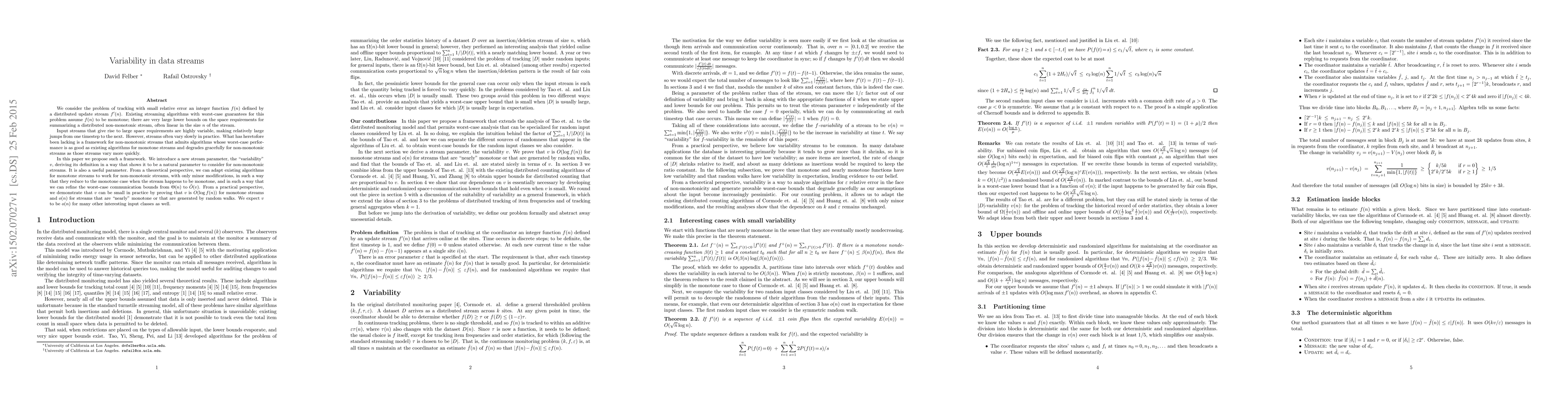 We consider the problem of tracking with small relative error an integer function $f(n)$ defined by a distributed update stream $f'(n)$. Existing streaming algorithms with worst-case guarantees for this problem assume $f(n)$ to be monotone; there are very large lower bounds on the space requirements for summarizing a distributed non-monotonic stream, often linear in the size $n$ of the stream. Input streams that give rise to large space requirements are highly variable, making relatively large jumps from one timestep to the next. However, streams often vary slowly in practice. What has heretofore been lacking is a framework for non-monotonic streams that admits algorithms whose worst-case performance is as good as existing algorithms for monotone streams and degrades gracefully for non-monotonic streams as those streams vary more quickly. In this paper we propose such a framework. We introduce a new stream parameter, the "variability" $v$, deriving its definition in a way that shows it to be a natural parameter to consider for non-monotonic streams. It is also a useful parameter. From a theoretical perspective, we can adapt existing algorithms for monotone streams to work for non-monotonic streams, with only minor modifications, in such a way that they reduce to the monotone case when the stream happens to be monotone, and in such a way that we can refine the worst-case communication bounds from $\Theta(n)$ to $\tilde{O}(v)$. From a practical perspective, we demonstrate that $v$ can be small in practice by proving that $v$ is $O(\log f(n))$ for monotone streams and $o(n)$ for streams that are "nearly" monotone or that are generated by random walks. We expect $v$ to be $o(n)$ for many other interesting input classes as well.