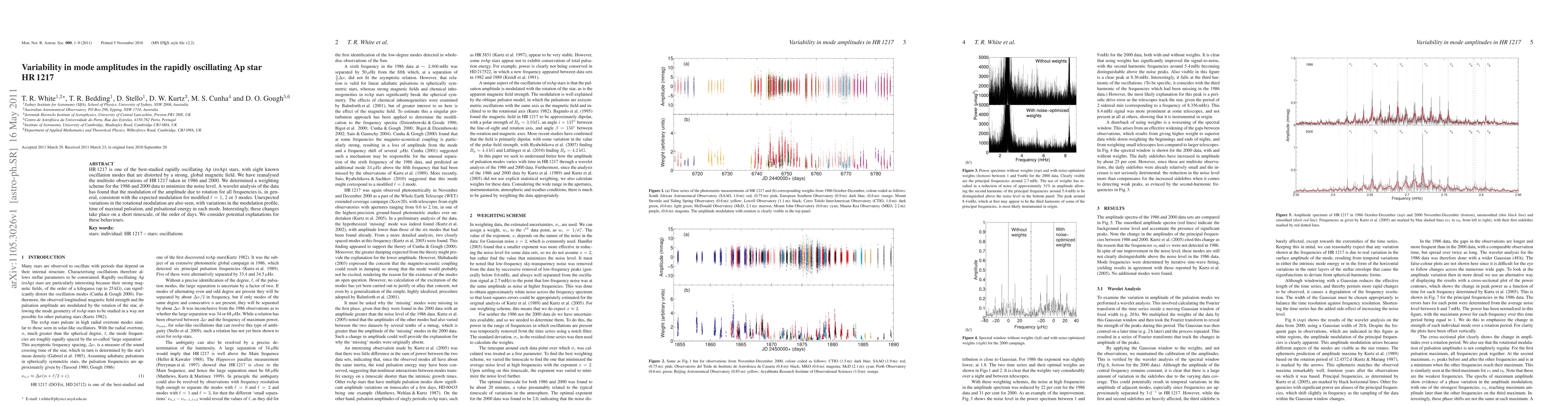 HR 1217 is one of the best-studied rapidly oscillating Ap (roAp) stars, with eight known oscillation modes that are distorted by a strong, global magnetic field. We have reanalysed the multisite observations of HR 1217 taken in 1986 and 2000. We determined a weighting scheme for the 1986 and 2000 data to minimize the noise level. A wavelet analysis of the data has found that the modulation of the amplitude due to rotation for all frequencies is, in general, consistent with the expected modulation for modified l=1, 2 or 3 modes. Unexpected variations in the rotational modulation are also seen, with variations in the modulation profile, time of maximal pulsation, and pulsational energy in each mode. Interestingly, these changes take place on a short timescale, of the order of days. We consider potential explanations for these behaviours.
