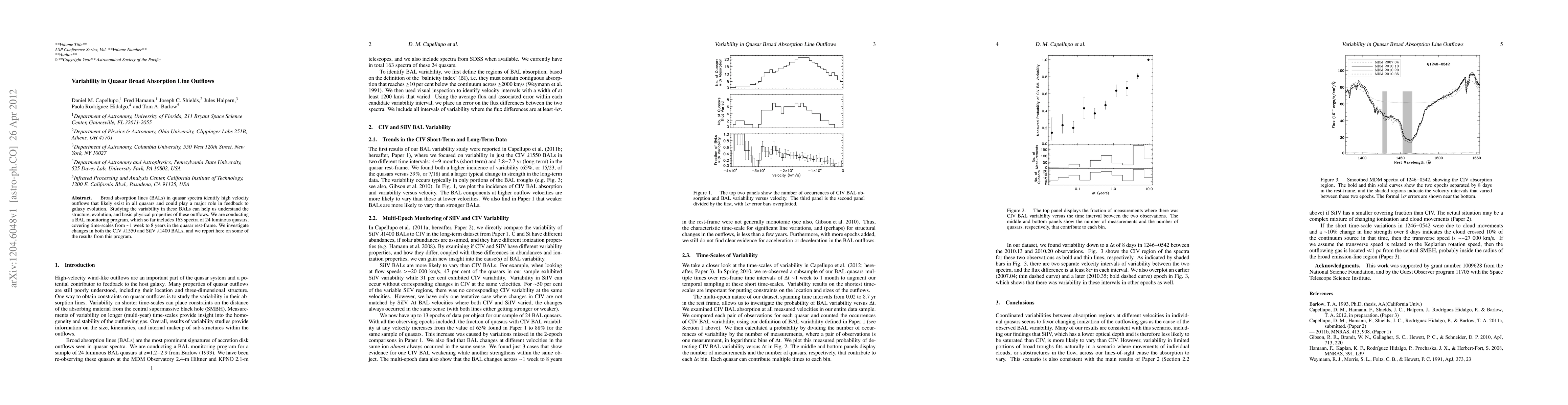 Broad absorption lines (BALs) in quasar spectra identify high velocity outflows that likely exist in all quasars and could play a major role in feedback to galaxy evolution. Studying the variability in these BALs can help us understand the structure, evolution, and basic physical properties of these outflows. We are conducting a BAL monitoring program, which so far includes 163 spectra of 24 luminous quasars, covering time-scales from \sim 1 week to 8 years in the quasar rest-frame. We investigate changes in both the CIV {\lambda}1550 and SiIV {\lambda}1400 BALs, and we report here on some of the results from this program.