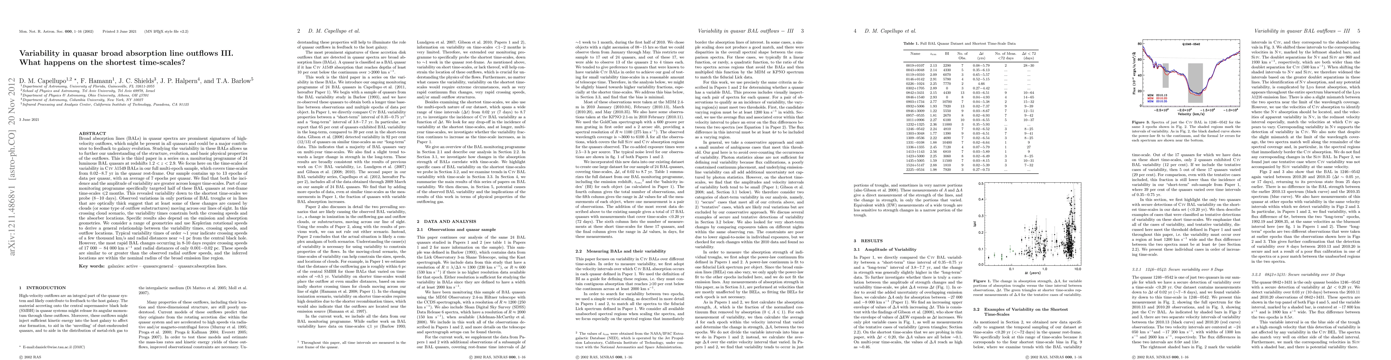 This paper investigates the variability of broad absorption lines (BALs) in quasar spectra on short time-scales, finding that rapid changes occur within 8-10 days, suggesting high-speed clouds or outflow substructures moving near the central black hole at distances of 0.001-0.02 pc. These findings provide insights into the dynamics and structure of quasar outflows.