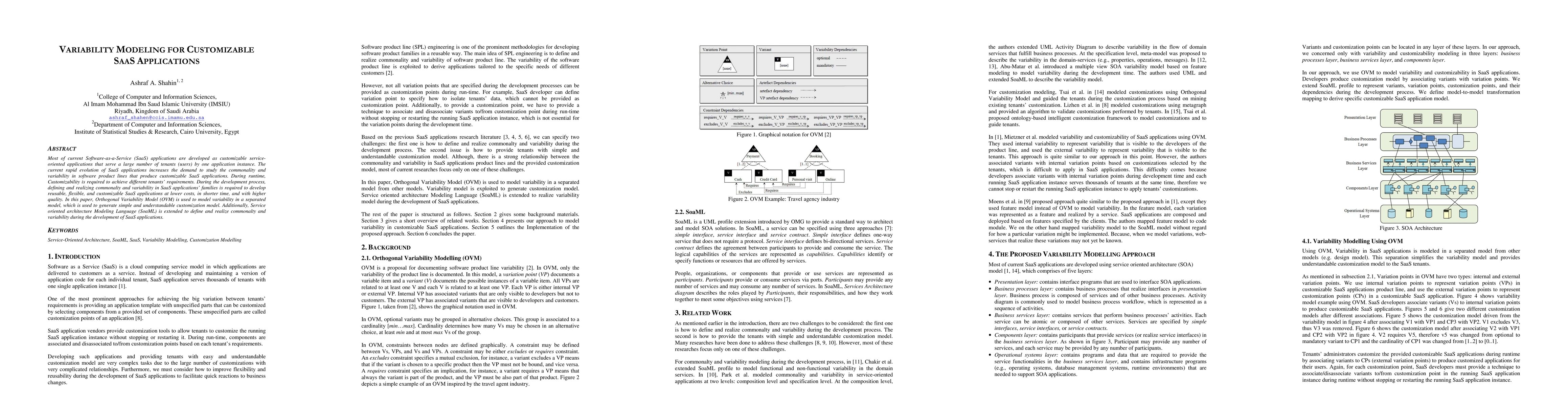 This paper explores modeling variability in customizable SaaS applications using Orthogonal Variability Model (OVM) to create clear customization models. It also extends Service oriented architecture Modeling Language (SoaML) to define and realize commonality and variability during SaaS application development, aiming to enhance reusability, flexibility, and cost-effectiveness.