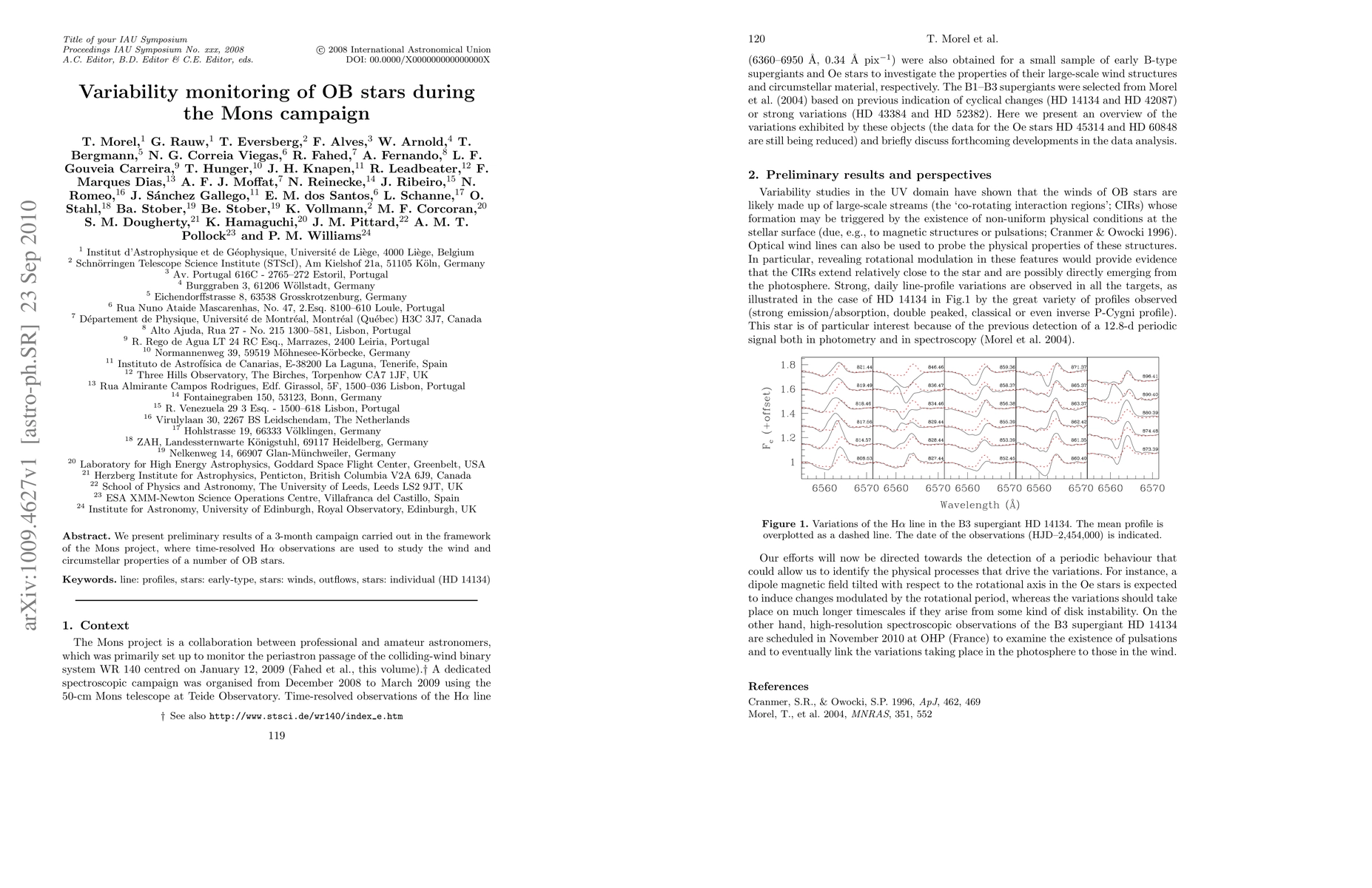 We present preliminary results of a 3-month campaign carried out in the framework of the Mons project, where time-resolved Halpha observations are used to study the wind and circumstellar properties of a number of OB stars.