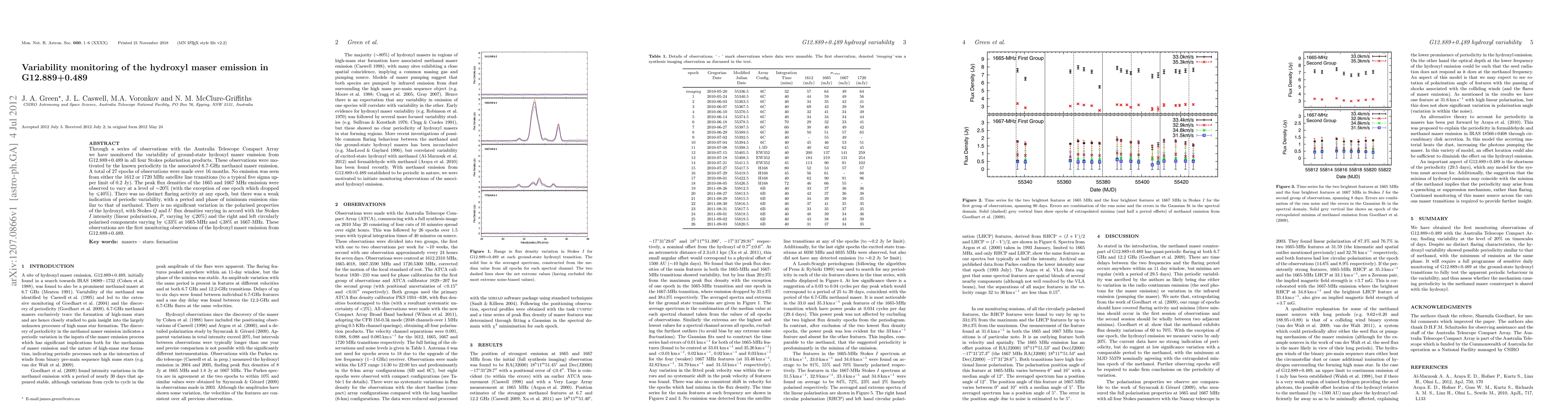 Through a series of observations with the Australia Telescope Compact Array we have monitored the variability of ground-state hydroxyl maser emission from G12.889+0.489 in all four Stokes polarisation products. These observations were motivated by the known periodicity in the associated 6.7-GHz methanol maser emission. A total of 27 epochs of observations were made over 16 months. No emission was seen from either the 1612 or 1720 MHz satellite line transitions (to a typical five sigma upper limit of 0.2 Jy). The peak flux densities of the 1665 and 1667 MHz emission were observed to vary at a level of ~20% (with the exception of one epoch which dropped by <40%). There was no distinct flaring activity at any epoch, but there was a weak indication of periodic variability, with a period and phase of minimum emission similar to that of methanol. There is no significant variation in the polarised properties of the hydroxyl, with Stokes Q and U flux densities varying in accord with the Stokes I intensity (linear polarisation, P, varying by <20%) and the right and left circularly polarised components varying by <33% at 1665-MHz and <38% at 1667-MHz. These observations are the first monitoring observations of the hydroxyl maser emission from G12.889+0.489.