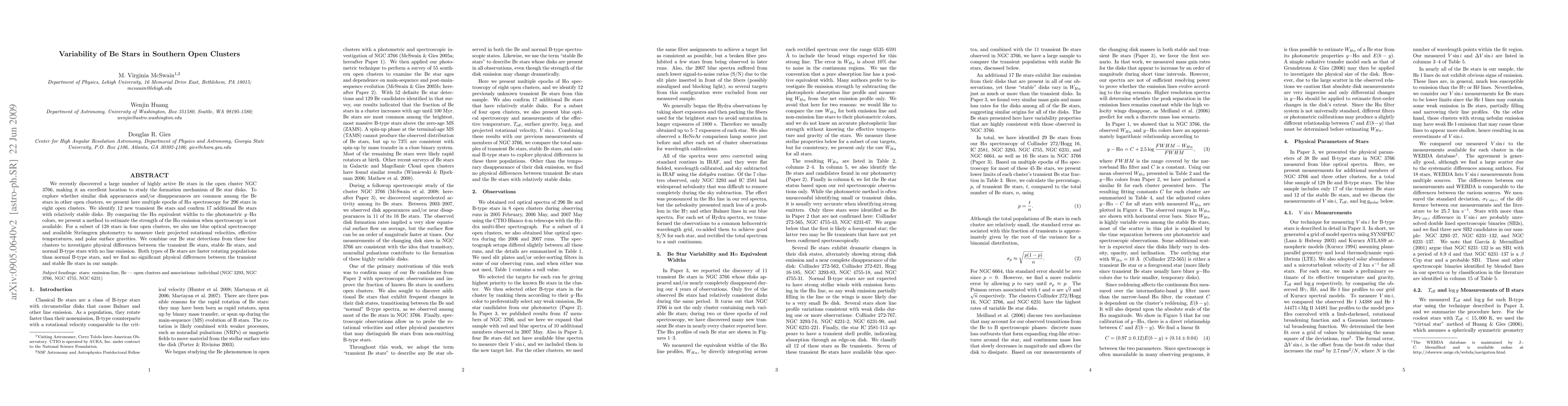 This study investigates the variability of Be stars in eight open clusters using H-alpha spectroscopy, identifying 12 new transient Be stars and confirming 17 stable Be stars. It finds no significant physical differences between transient and stable Be stars, both of which rotate faster than normal B-type stars.
