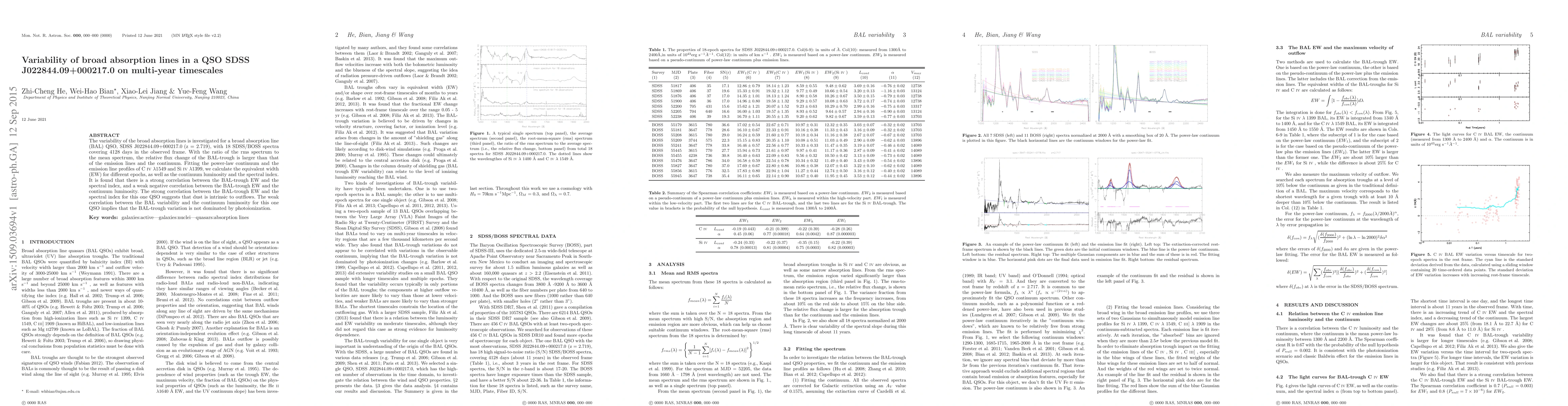 The variability of the broad absorption lines is investigated for a broad absorption line (BAL) QSO, SDSS J022844.09+000217.0 (z = 2.719), with 18 SDSS/BOSS spectra covering 4128 days in the observed frame. With the ratio of the rms spectrum to the mean spectrum, the relative flux change of the BAL-trough is larger than that of the emission lines and the continuum. Fitting the power-law continuum and the emission line profiles of \civ $\lambda$1549 and \siiv$\lambda$1399, we calculate the equivalent width (EW) for different epochs, as well as the continuum luminosity and the spectral index. It is found that there is a strong correlation between the BAL-trough EW and the spectral index, and a weak negative correlation between the BAL-trough EW and the continuum luminosity. The strong correlation between the BAL-trough EW and the spectral index for this one QSO suggests that dust is intrinsic to outflows. The weak correlation between the BAL variability and the continuum luminosity for this one QSO implies that the BAL-trough variation is not dominated by photoionization.