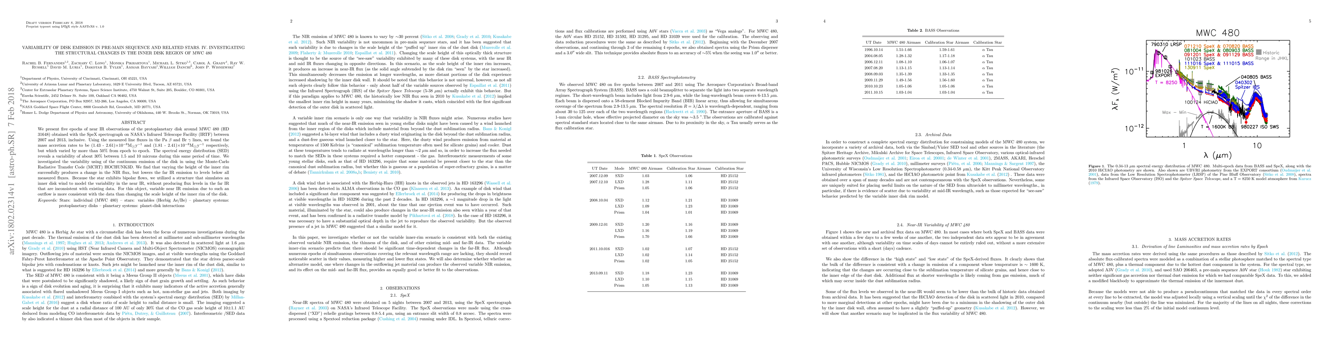 We present five epochs of near IR observations of the protoplanetary disk around MWC 480 (HD31648) obtained with the SpeX spectrograph on NASA's Infrared Telescope Facility (IRTF) between 2007 and 2013, inclusive. Using the measured line fluxes in the Pa beta and Br gamma lines, we found the mass accretion rates to be (1.43 - 2.61)x10^-8 Msun y^-1 and (1.81 - 2.41)x10^-8 Msun y^-1 respectively, but which varied by more than 50% from epoch to epoch. The spectral energy distribution (SED)reveals a variability of about 30% between 1.5 and 10 microns during this same period of time. We investigated the variability using of the continuum emission of the disk in using the Monte-Carlo Radiative Transfer Code (MCRT) HOCHUNK3D. We find that varying the height of the inner rim successfully produces a change in the NIR flux, but lowers the far IR emission to levels below all measured fluxes. Because the star exhibits bipolar flows, we utilized a structure that simulates an inner disk wind to model the variability in the near IR, without producing flux levels in the far IR that are inconsistent with existing data. For this object, variable near IR emission due to such an outflow is more consistent with the data than changing the scale height of the inner rim of the disk.
