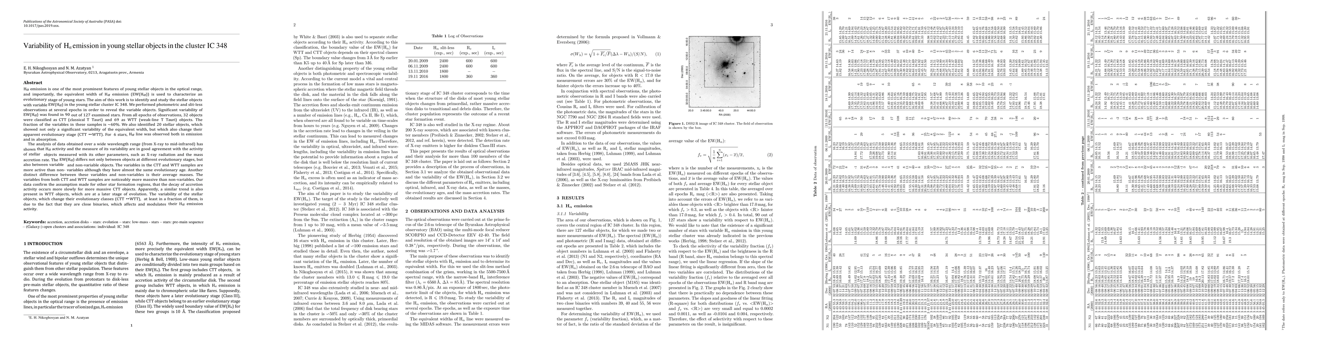 This study investigates the variability of Ha emission in young stellar objects within the IC 348 cluster, identifying significant EW(Ha) variability in 60% of examined stars. The analysis shows that variable objects, especially those changing evolutionary stages, exhibit higher activity and mass compared to non-variable objects, suggesting a link between Ha emission variability and stellar mass.