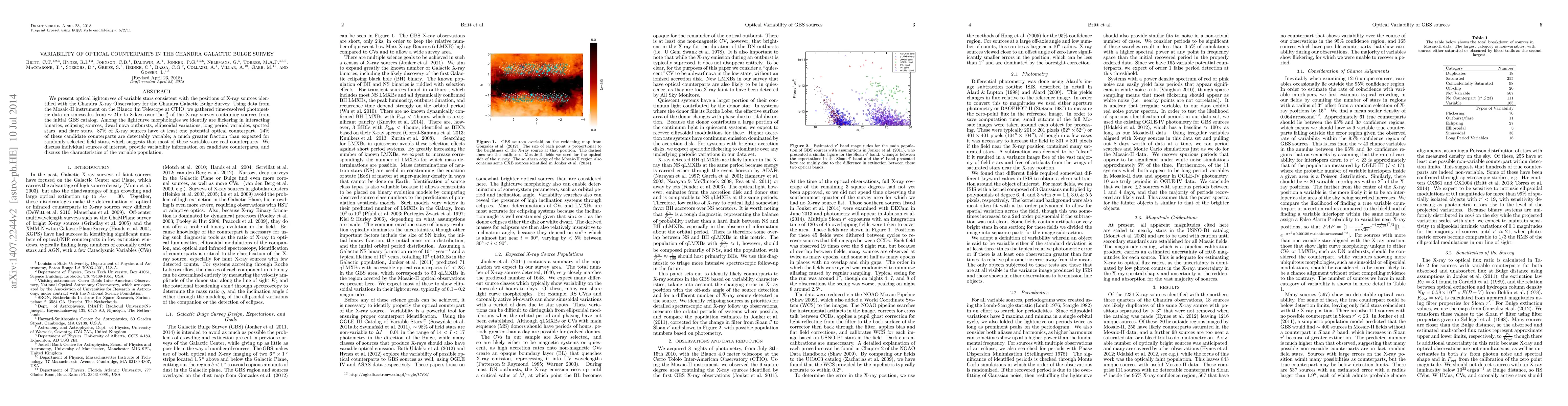 This paper examines optical lightcurves of variable stars associated with X-ray sources identified in the Chandra Galactic Bulge Survey, revealing that $24\%$ of candidate optical counterparts are variable, suggesting a higher likelihood of these being true counterparts compared to random field stars. The study identifies various lightcurve morphologies and discusses the characteristics of the variable population.