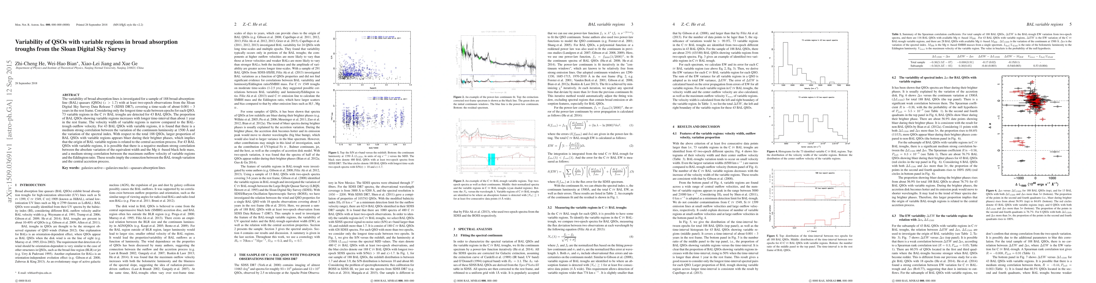 The variability of broad absorption lines is investigated for a sample of 188 broad-absorption-line (BAL) quasars (QSOs) ($z > 1.7$) with at least two-epoch observations from the Sloan Digital Sky Survey Data Release 7 (SDSS DR7), covering a time-scale of about 0.001 -- 3 years in the rest frame. Considering only the longest time-scale between epochs for each QSO, 73 variable regions in the \civ BAL troughs are detected for 43 BAL QSOs. The proportion of BAL QSOs showing variable regions increases with longer time-interval than about 1 year in the rest frame. The velocity width of variable regions is narrow compared to the BAL-trough outflow velocity. For 43 BAL QSOs with variable regions, it is found that there is a medium strong correlation between the variation of the continuum luminosity at 1500 \AA\ and the variation of the spectral index. With respect to the total 188 QSOs, larger proportion of BAL QSOs with variable regions appears bluer during their brighter phases, which implies that the origin of BAL variable regions is related to the central accretion process. For 43 BAL QSOs with variable regions, it is possible that there is a negative medium strong correlation between the absolute variation of the equivalent width and the \mgii-based black hole mass, and a medium strong correlation between the maximum outflow velocity of variable regions and the Eddington ratio. These results imply the connection between the BAL-trough variation and the central accretion process.