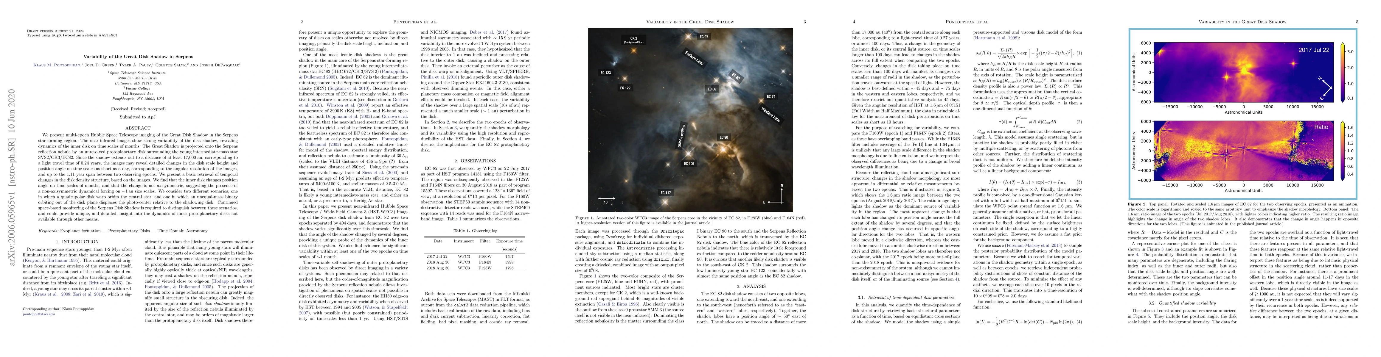 This paper uses Hubble Space Telescope imaging to reveal significant variability in the Great Disk Shadow in the Serpens star-forming region, indicating dynamic changes in the inner disk on monthly timescales. The study suggests non-axisymmetric forces influencing the disk, proposing either a quadrupolar warp or a binary companion as potential causes, and emphasizes the need for ongoing monitoring to determine the underlying dynamics.