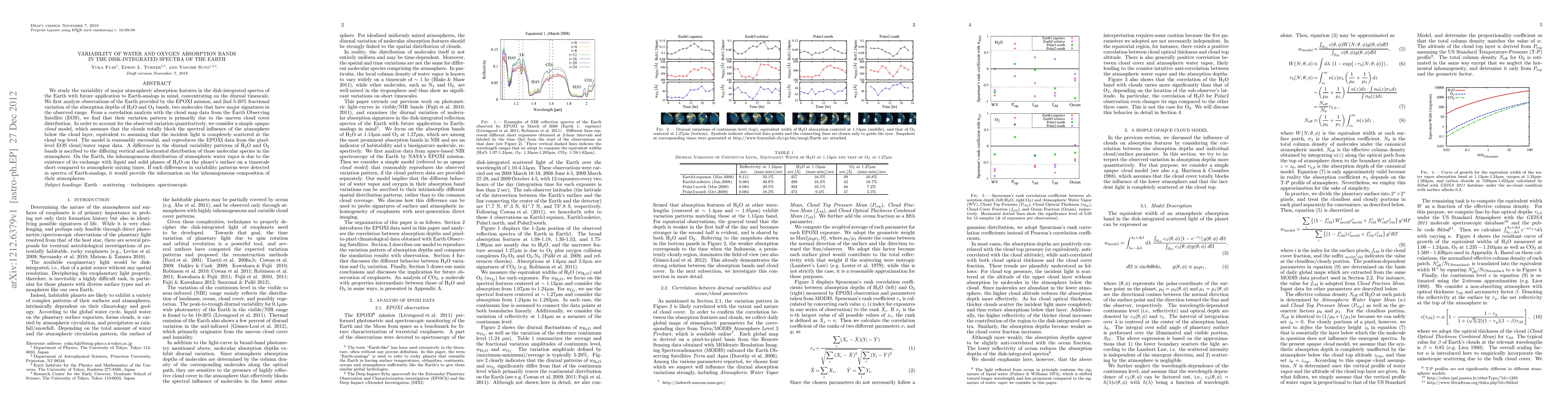 This study investigates the variability of H2O and O2 absorption bands in Earth's disk-integrated spectra, finding 5-20% fractional variation due to uneven cloud cover. A simple opaque cloud model successfully reproduces these variations, highlighting differences in the diurnal variability patterns of H2O and O2 linked to their distinct atmospheric distributions.
