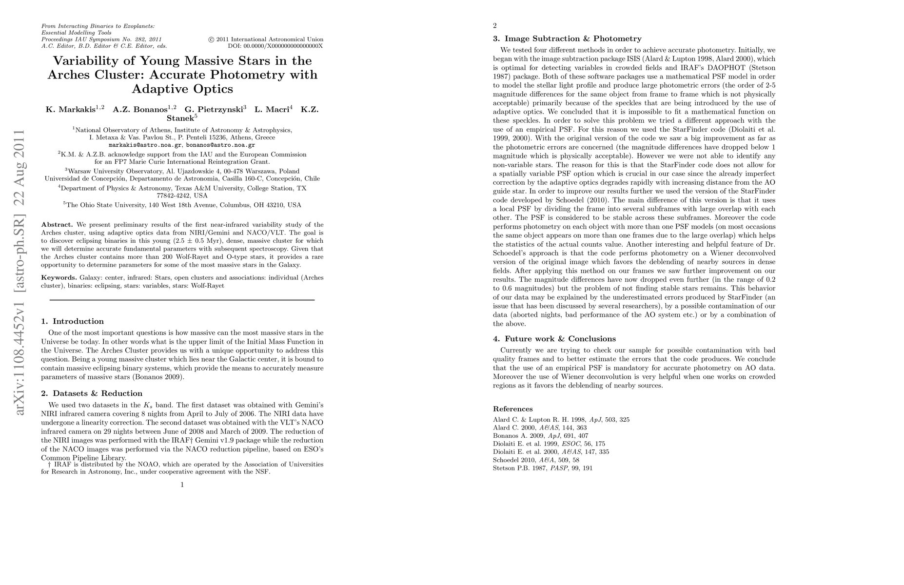 We present preliminary results of the first near-infrared variability study of the Arches cluster, using adaptive optics data from NIRI/Gemini and NACO/VLT. The goal is to discover eclipsing binaries in this young (2.5 $\pm$ 0.5 Myr), dense, massive cluster for which we will determine accurate fundamental parameters with subsequent spectroscopy. Given that the Arches cluster contains more than 200 Wolf-Rayet and O-type stars, it provides a rare opportunity to determine parameters for some of the most massive stars in the Galaxy.