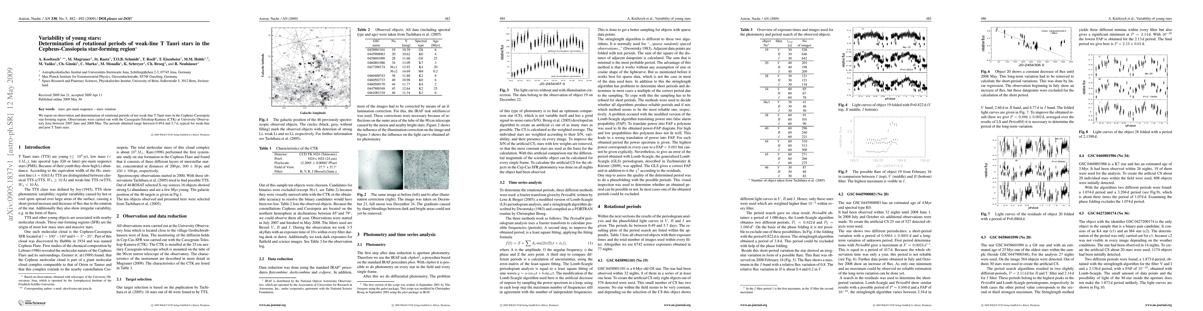 This study determined the rotational periods of ten weak-line T Tauri stars in the Cepheus-Cassiopeia region using observations from the CTK at University Observatory Jena. The obtained periods range from 0.49 to 5.7 days, consistent with typical values for these stars.