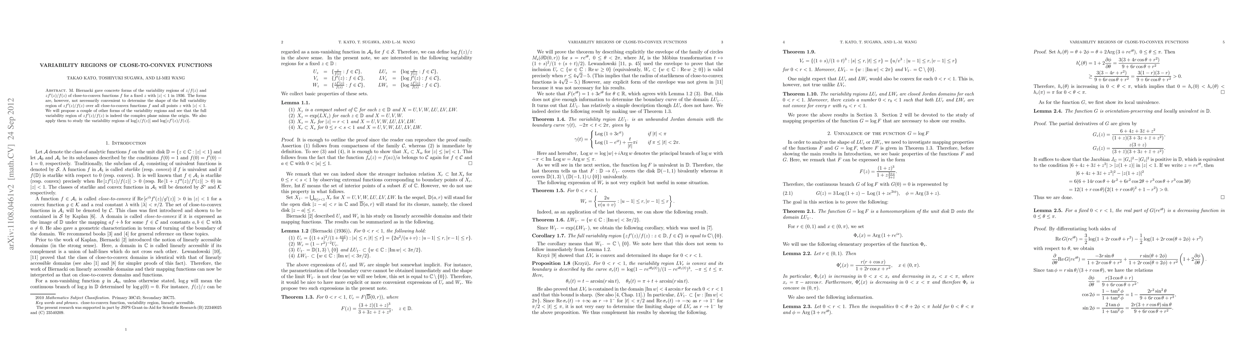 M. Biernacki gave concrete forms of the variability regions of $z/f(z)$ and $zf'(z)/f(z)$ of close-to-convex functions $f$ for a fixed $z$ with $|z|<1$ in 1936. The forms are, however, not necessarily convenient to determine the shape of the full variability region of $zf'(z)/f(z)$ over all close-to-convex functions $f$ and all points $z$ with $|z|<1.$ We will propose a couple of other forms of the variability regions and see that the full variability region of $zf'(z)/f(z)$ is indeed the complex plane minus the origin. We also apply them to study the variability regions of $\log[z/f(z)]$ and $\log[zf'(z)/f(z)].$