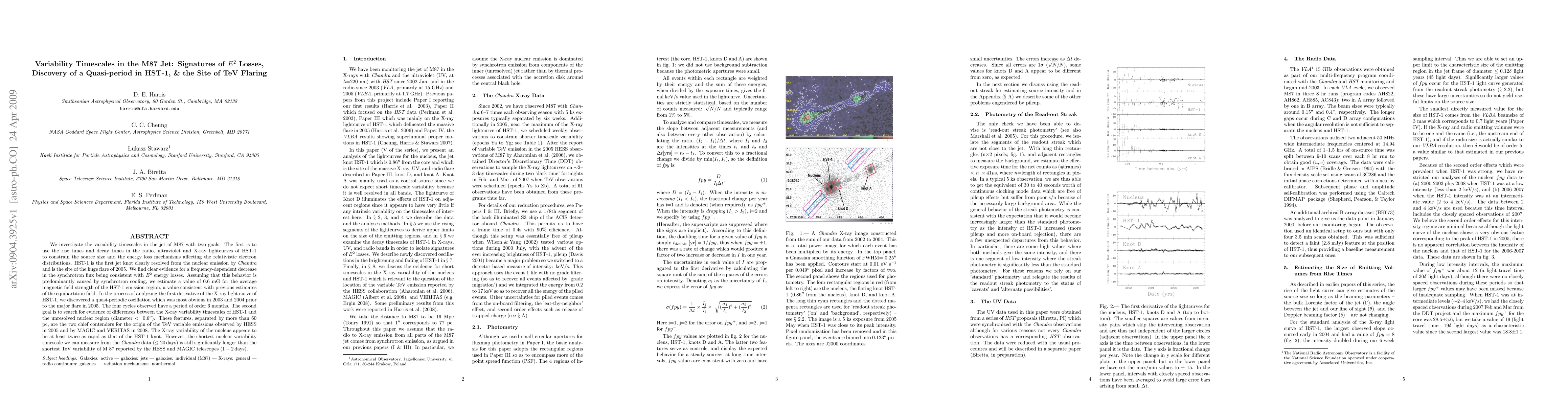 Researchers studied the variability of the M87 jet, finding evidence of energy losses consistent with E-squared losses and discovering a quasi-periodic oscillation in the X-ray light curve of HST-1, with implications for understanding the source of TeV flaring.