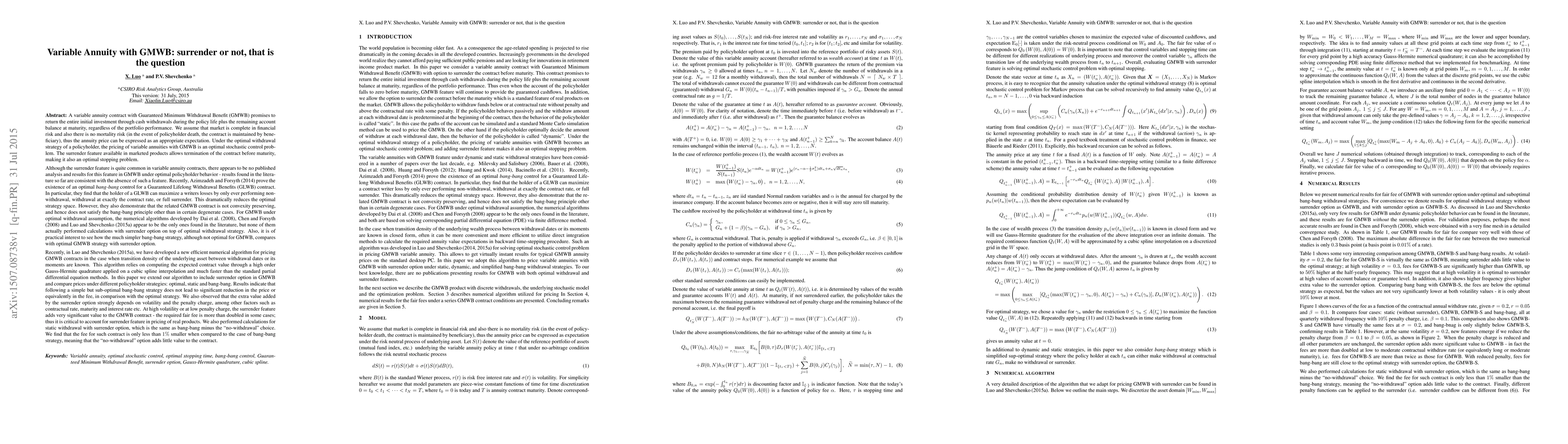 A study on variable annuities with Guaranteed Minimum Withdrawal Benefit (GMWB) found that surrendering the contract can add significant value, but a simple bang-bang strategy does not lead to a substantial reduction in price or fee compared to the optimal strategy.