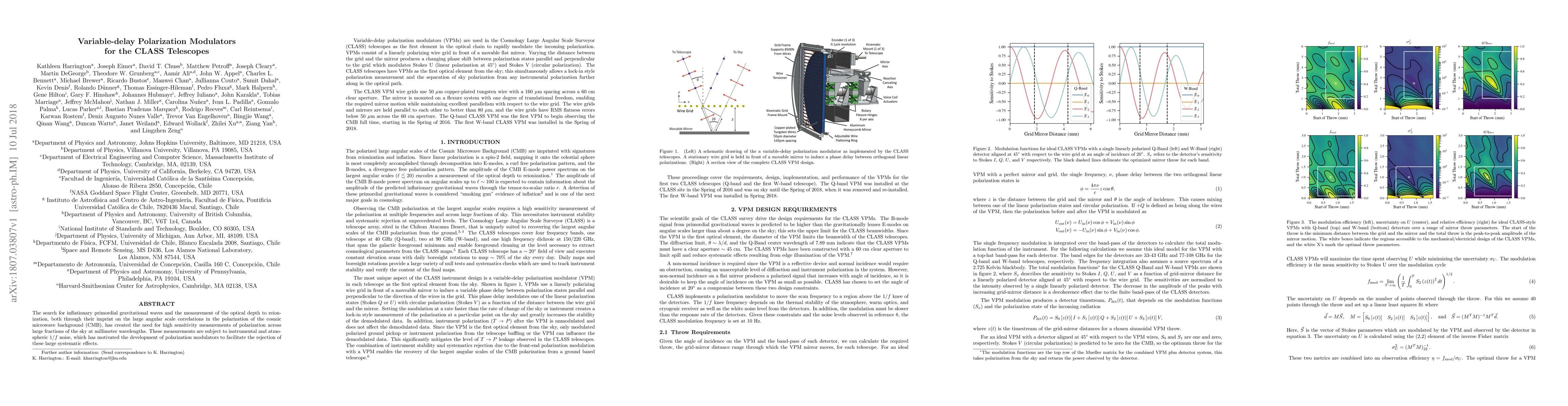 The search for inflationary primordial gravitational waves and the measurement of the optical depth to reionization, both through their imprint on the large angular scale correlations in the polarization of the cosmic microwave background (CMB), has created the need for high sensitivity measurements of polarization across large fractions of the sky at millimeter wavelengths. These measurements are subject to instrumental and atmospheric $1/f$ noise, which has motivated the development of polarization modulators to facilitate the rejection of these large systematic effects. Variable-delay polarization modulators (VPMs) are used in the Cosmology Large Angular Scale Surveyor (CLASS) telescopes as the first element in the optical chain to rapidly modulate the incoming polarization. VPMs consist of a linearly polarizing wire grid in front of a movable flat mirror. Varying the distance between the grid and the mirror produces a changing phase shift between polarization states parallel and perpendicular to the grid which modulates Stokes U (linear polarization at $45^\circ$) and Stokes V (circular polarization). The CLASS telescopes have VPMs as the first optical element from the sky; this simultaneously allows a lock-in style polarization measurement and the separation of sky polarization from any instrumental polarization further along in the optical path. The Q-band CLASS VPM was the first VPM to begin observing the CMB full time, starting in the Spring of 2016. The first W-band CLASS VPM was installed in the Spring of 2018.