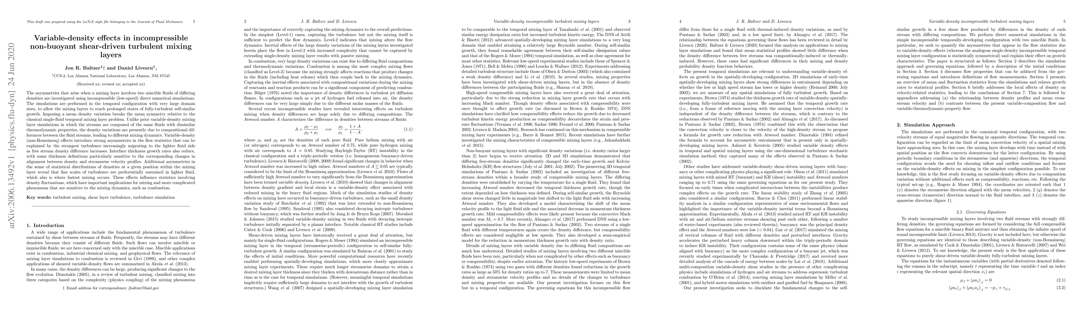 The asymmetries that arise when a mixing layer involves two miscible fluids of differing densities are investigated using incompressible (low-speed) direct numerical simulations. The simulations are performed in the temporal configuration with very large domain sizes, to allow the mixing layers to reach prolonged states of fully-turbulent self-similar growth. Imposing a mean density variation breaks the mean symmetry relative to the classical single-fluid temporal mixing layer problem. Unlike prior variable-density mixing layer simulations in which the streams are composed of the same fluids with dissimilar thermodynamic properties, the density variations are presently due to compositional differences between the fluid streams, leading to different mixing dynamics. Variable-density (non-Boussinesq) effects introduce strong asymmetries in the flow statistics that can be explained by the strongest turbulence increasingly migrating to the lighter fluid side as free stream density difference increases. Interface thickness growth rates also reduce, with some thickness definitions particularly sensitive to the corresponding changes in alignment between density and streamwise velocity profiles. Additional asymmetries in the sense of statistical distributions of densities at a given position within the mixing layer reveal that fine scales of turbulence are preferentially sustained in lighter fluid, which also is where fastest mixing occurs. These effects influence statistics involving density fluctuations, which have important implications for mixing and more complicated phenomena that are sensitive to the mixing dynamics, such as combustion.