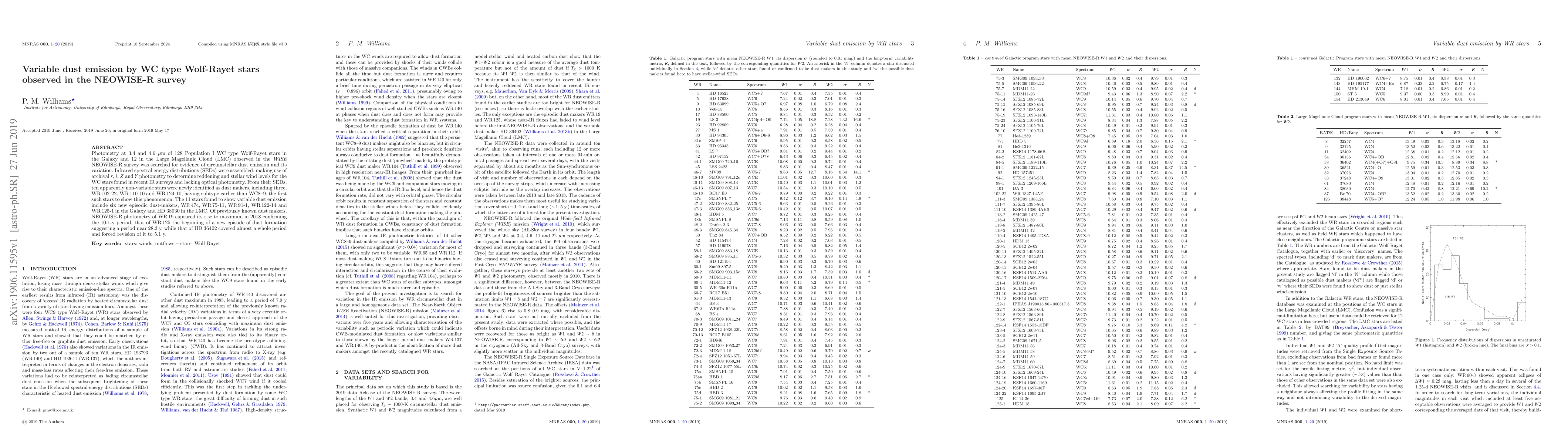 Photometry at 3.4 and 4.6 micron of 128 Population~I WC type Wolf-Rayet stars in the Galaxy and 12 in the Large Magellanic Cloud (LMC) observed in the WISE NEOWISE-R survey was searched for evidence of circumstellar dust emission and its variation. Infrared spectral energy distributions (SEDs) were assembled, making use of archival r, i, Z and Y photometry to determine reddening and stellar wind levels for the WC stars found in recent IR surveys and lacking optical photometry. From their SEDs, ten apparently non-variable stars were newly identified as dust makers, including three, WR 102-22, WR 110-10 and WR 124-10, having subtype earlier than WC8-9, the first such stars to show this phenomenon. The 11 stars found to show variable dust emission include six new episodic dust-makers, WR 47c, WR 75-11, WR 91-1, WR 122-14 and WR 125-1 in the Galaxy and HD 38030 in the LMC. Of previously known dust makers, NEOWISE-R photometry of WR 19 captured its rise to maximum in 2018, confirming the 10.1-y period, that of WR 125 the beginning of a new episode of dust formation suggesting a period near 28.3~y., while that of HD 36402 covered almost a whole period and forced revision of it to 5.1~y.