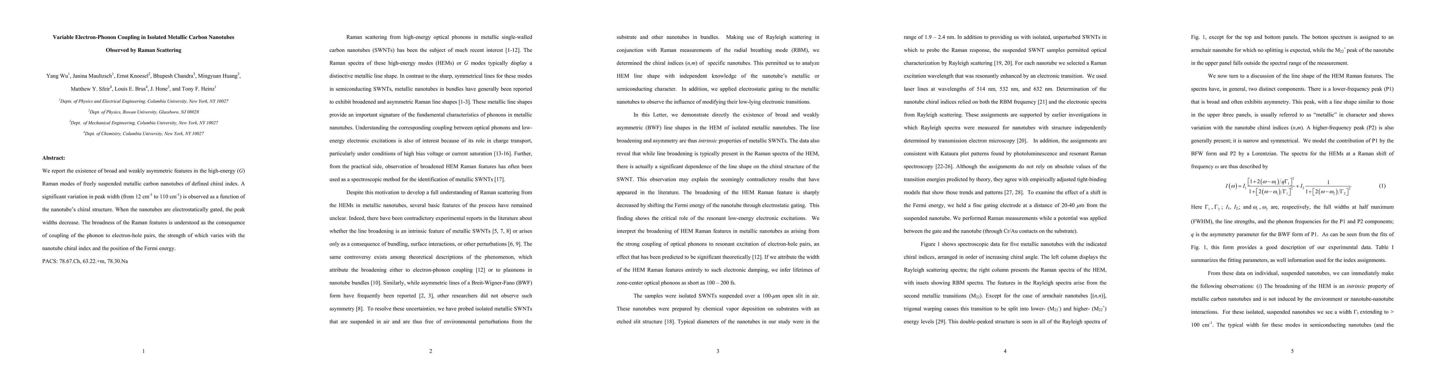 Researchers discovered variable electron-phonon coupling in metallic carbon nanotubes, leading to broad Raman features that narrow when gated. This variation is linked to the nanotube's chiral index and Fermi energy position.