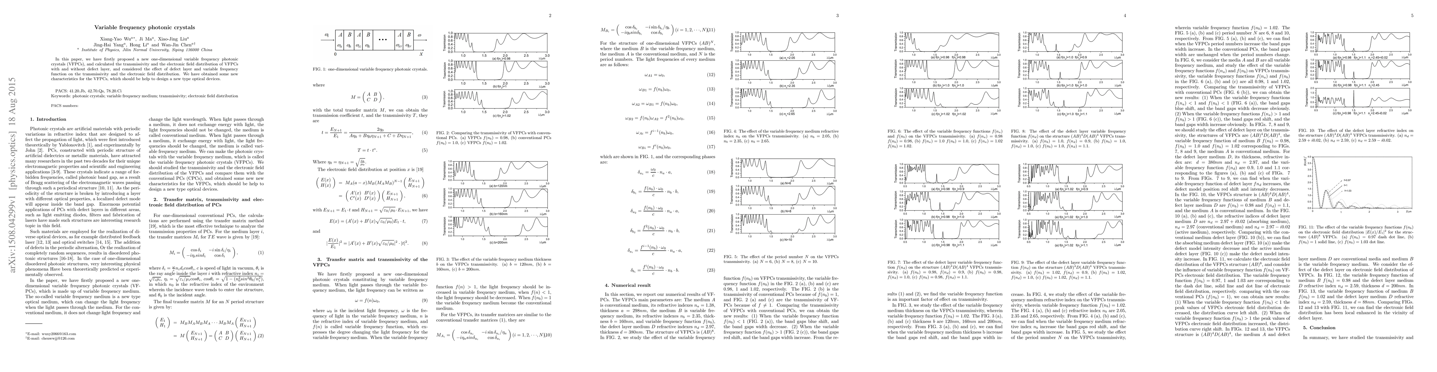 Researchers proposed variable frequency photonic crystals (VFPCs) with new characteristics for designing optical devices, exploring their transmissivity and electronic field distribution with and without defect layers.