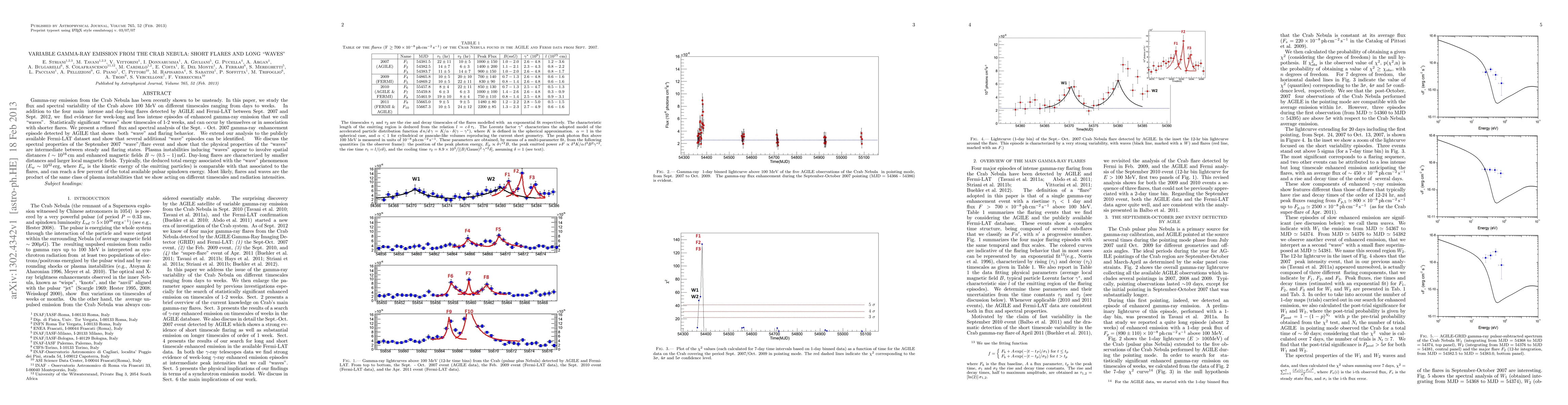 Researchers found evidence of short gamma-ray flares and longer 'waves' in the Crab Nebula, with 'waves' showing intermediate spectral properties between steady and flaring states.