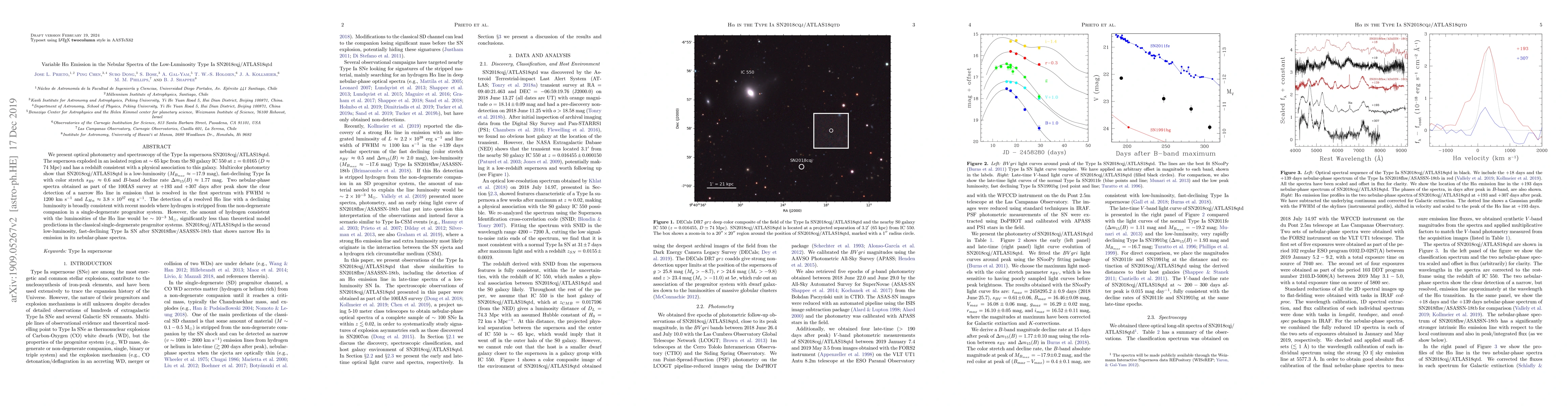 This Type Ia supernova has a narrow H$eta$ line in its nebular-phase spectrum, indicating hydrogen is stripped from the companion star in a single-degenerate progenitor system, but with significantly less hydrogen than predicted by theory.