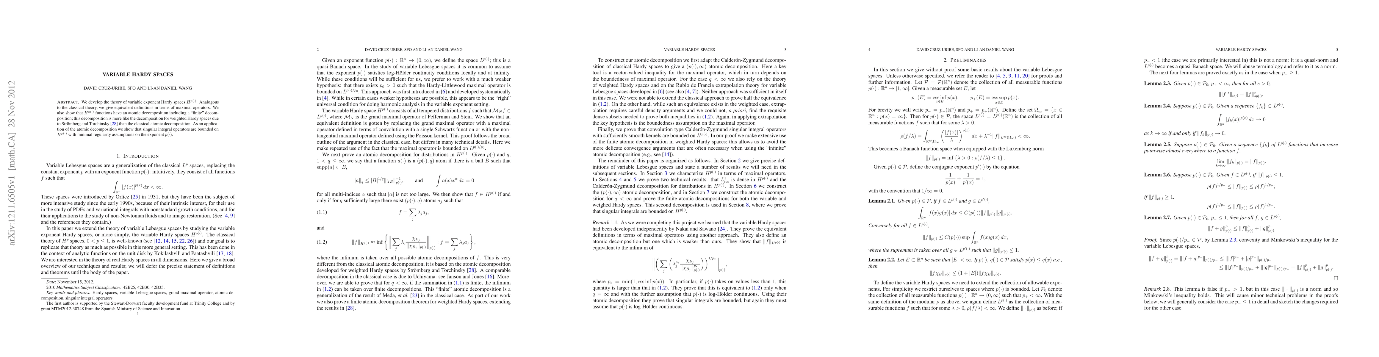 This paper develops the theory of variable exponent Hardy spaces, providing equivalent definitions via maximal operators and demonstrating an atomic decomposition similar to weighted Hardy spaces. It also proves that singular integral operators are bounded on these spaces under minimal regularity conditions on the exponent function.