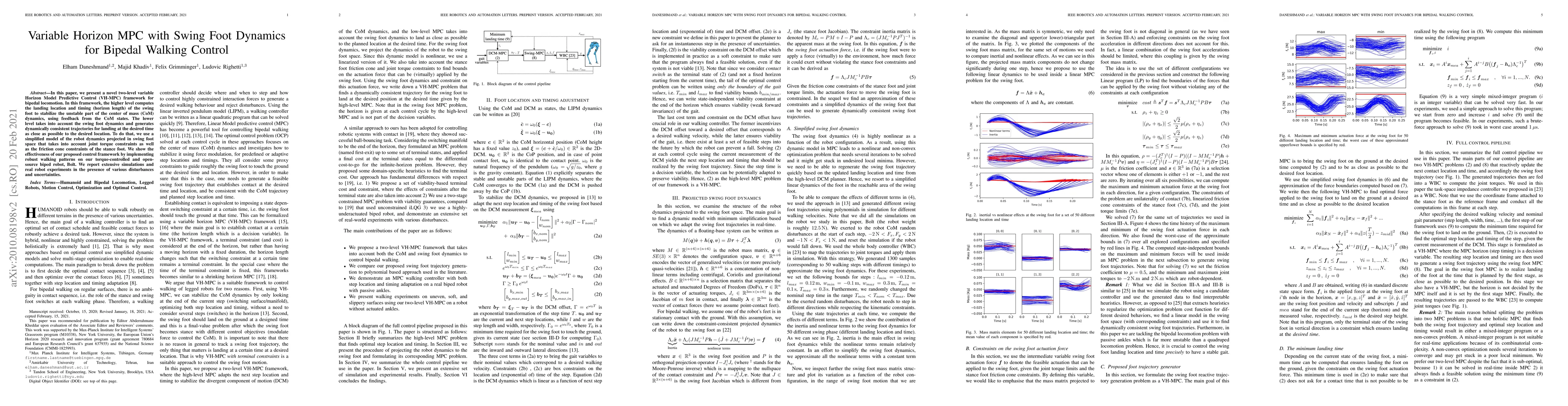 A novel control framework is proposed to improve stability in bipedal walking, using a two-level Model Predictive Control approach that accounts for swing foot dynamics and joint torque constraints.