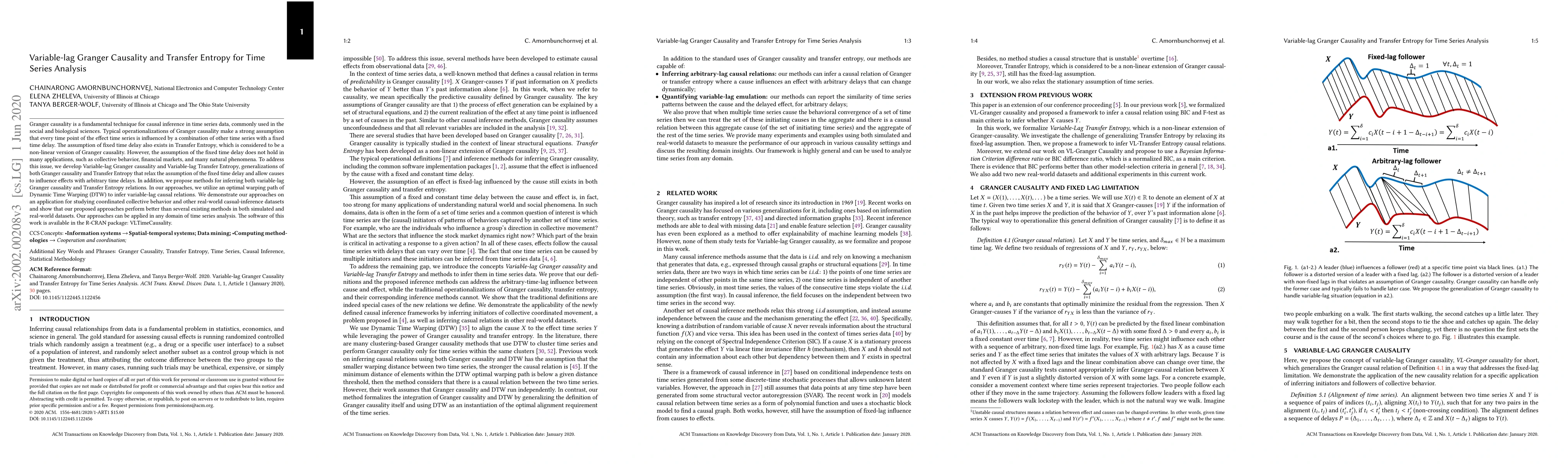 This paper develops Variable-lag Granger causality and Transfer Entropy methods to analyze time series data without the fixed time delay assumption, using Dynamic Time Warping for optimal warping paths. The proposed approaches outperform existing methods in both simulated and real-world datasets, applicable across various time series analysis domains.