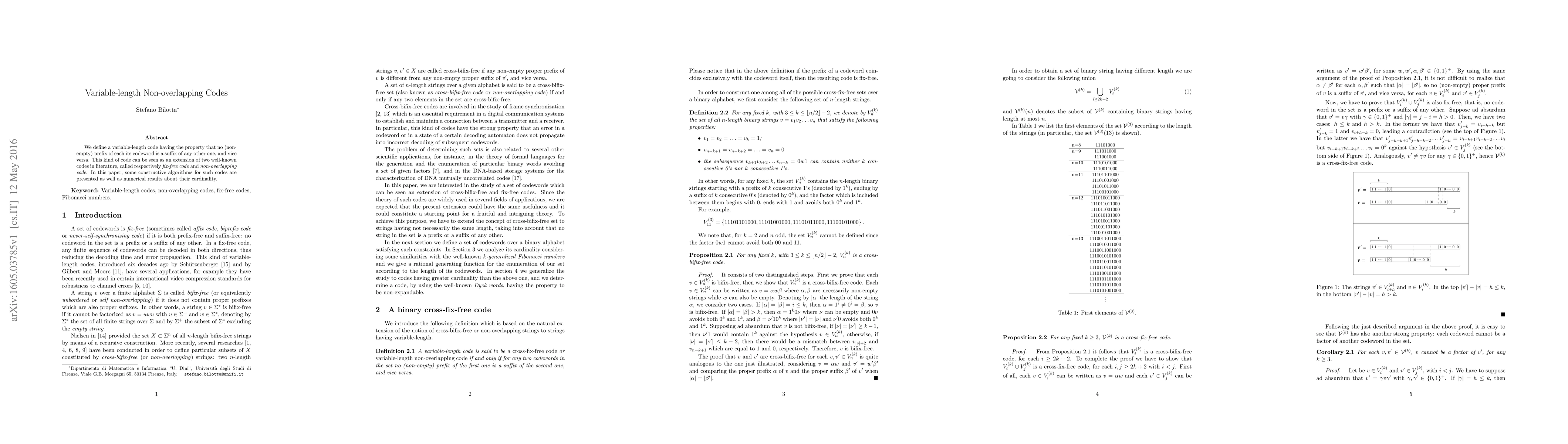 This paper introduces a variable-length code where no prefix of any codeword is a suffix of another, extending fix-free and non-overlapping codes. It presents constructive algorithms for generating these codes and provides numerical results on their cardinality.