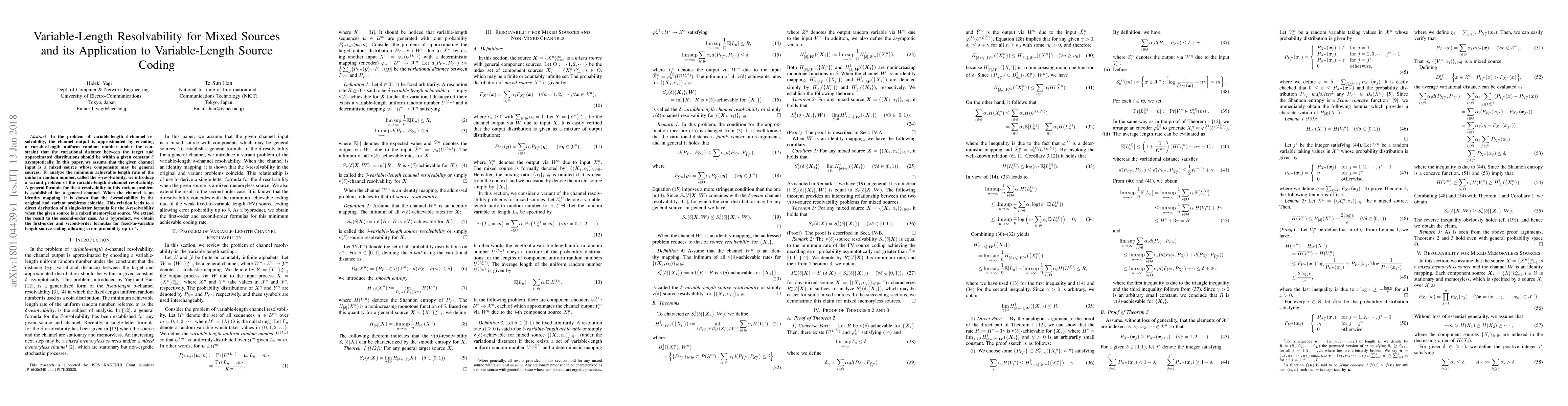 This paper investigates variable-length $\delta$-channel resolvability for mixed sources, establishing a general formula for the $\delta$-resolvability under an identity mapping channel. It derives single-letter and second-order formulas for variable-length source coding with error probability up to $\delta$.