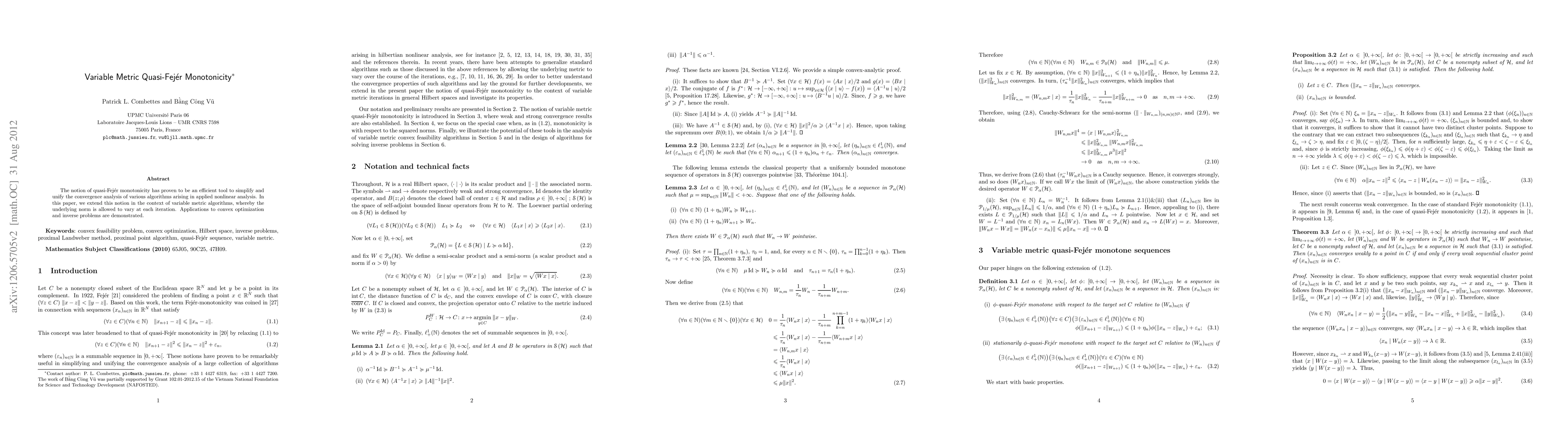This paper extends the concept of quasi-Fejér monotonicity to variable metric algorithms, allowing the norm to change iteratively, and demonstrates its applications in convex optimization and inverse problems.