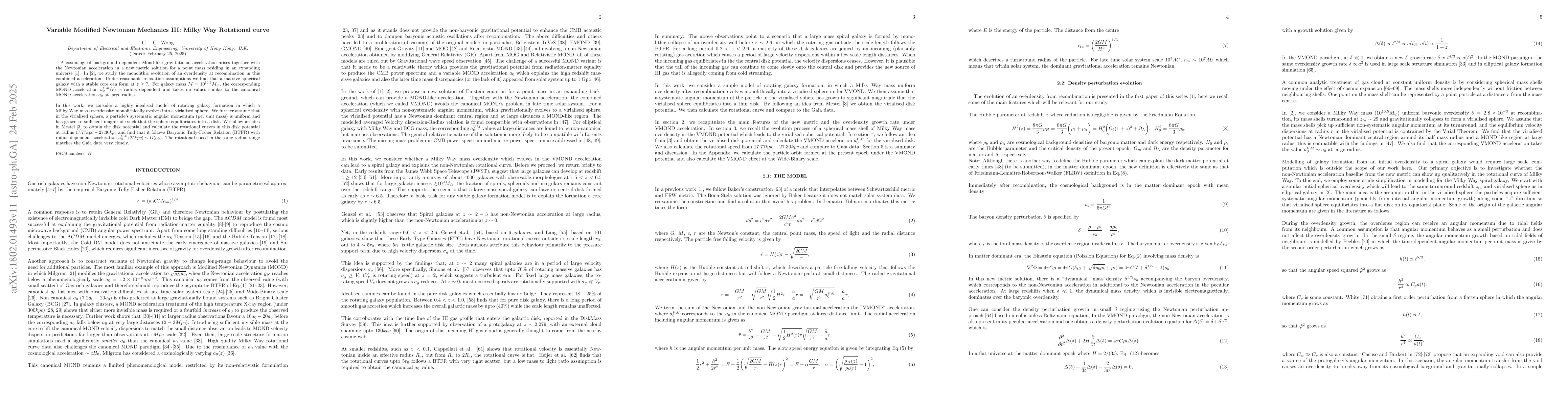 This paper proposes a modified Newtonian mechanics framework that incorporates a cosmological acceleration, replacing the MOND acceleration $a_0$. It demonstrates that this model can explain the Baryonic Tully Fisher Relation (BTFR) in protogalactic clouds without requiring dark matter.
