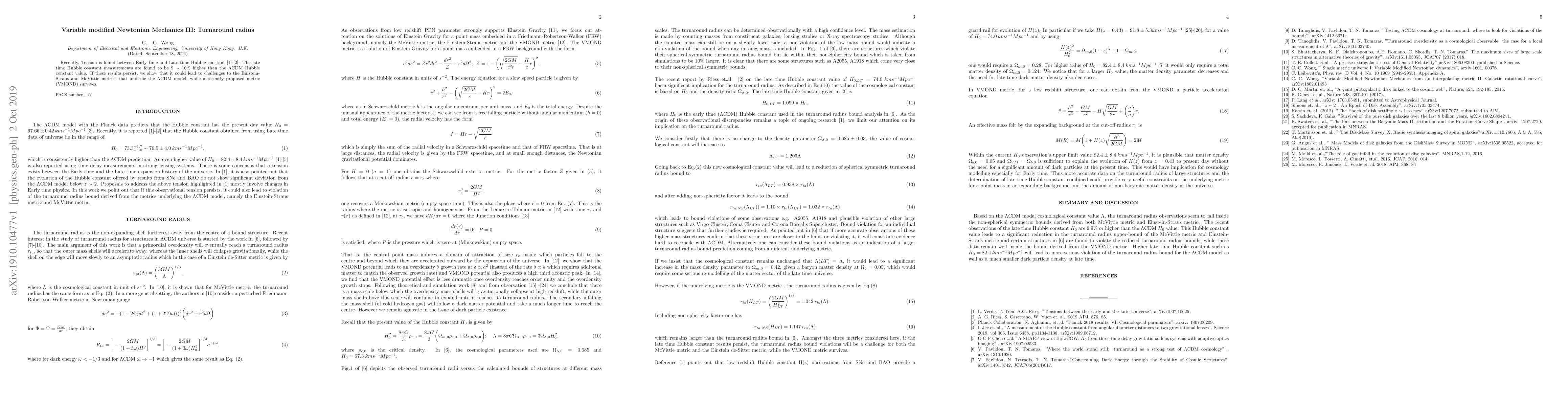 Research finds that late-time Hubble constant measurements may challenge traditional Einstein-Straus and McVittie metrics, but a new metric called VMOND survives these tests.