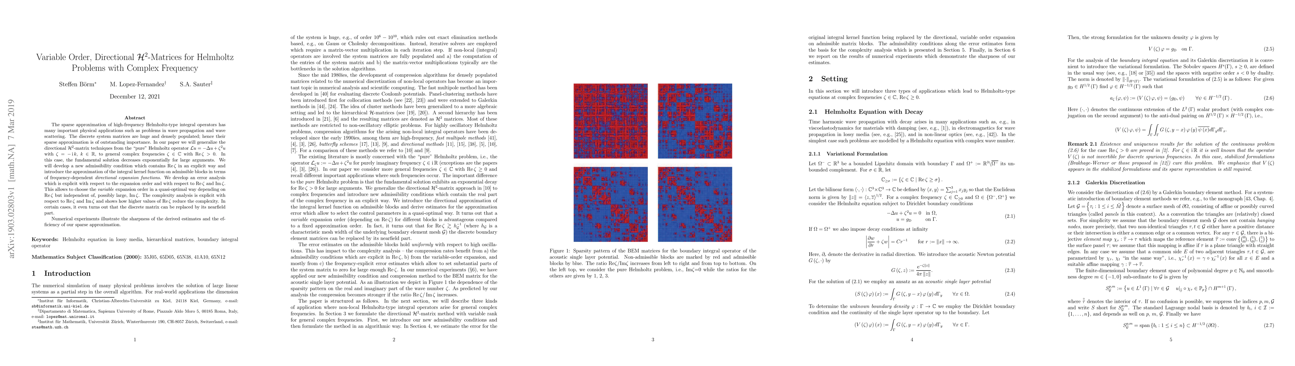 This paper generalizes directional $\mathcal{H}^{2}$-matrix techniques for high-frequency Helmholtz problems to complex frequencies, introducing a new admissibility condition and variable expansion order. The method efficiently approximates integral kernels, reducing complexity with higher real frequency values.